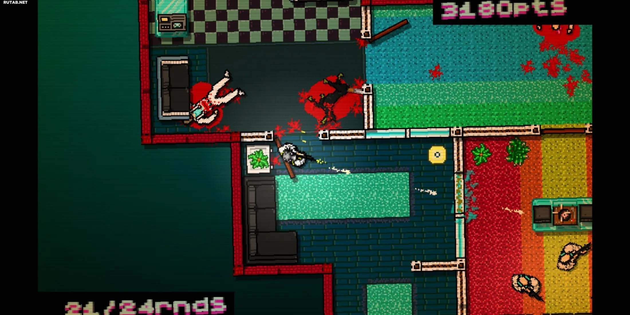 После молниеносного обучения и короткой сцены, задающей сцену, Hotline Miami буквально вталкивает игрока на первый уровень. Жестокое насилие и пульсирующая музыка почти мгновенно впрыскивают адреналин, а возможность моментального перезапуска после смерти поддерживает этот накал.