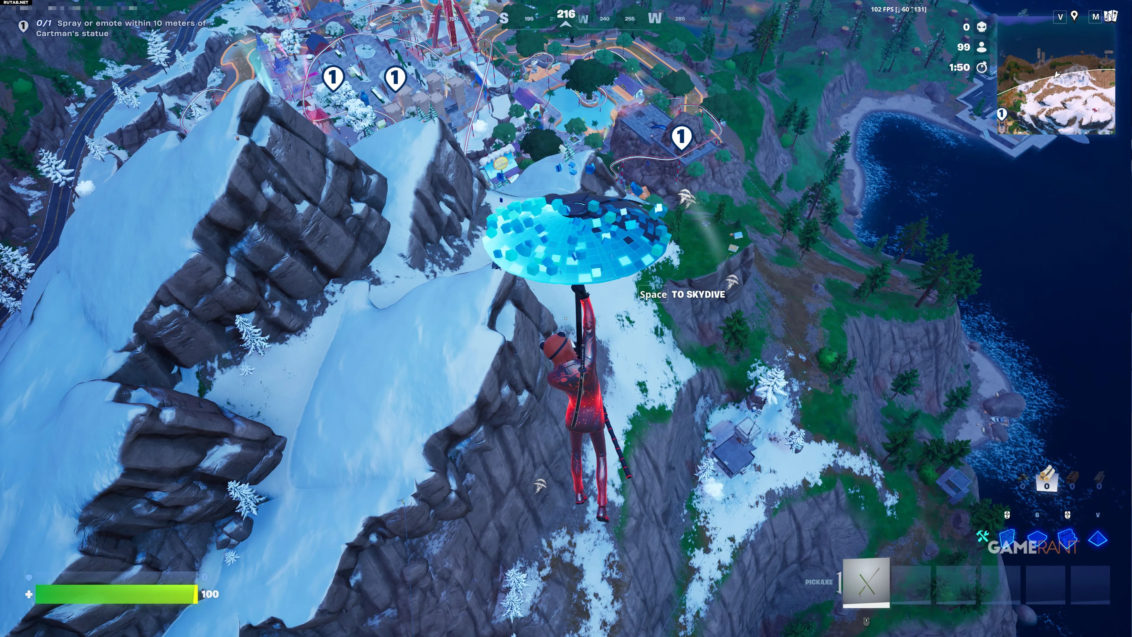Чтобы выполнить задание «используйте спрей или эмоцию в пределах 10 метров от статуи Картмана», нужно найти одну из трех разных статуй и просто использовать эмоцию или спрей рядом с ней. Все три статуи находятся в «Картманленде» — новой тематической локации. Вот где их искать.