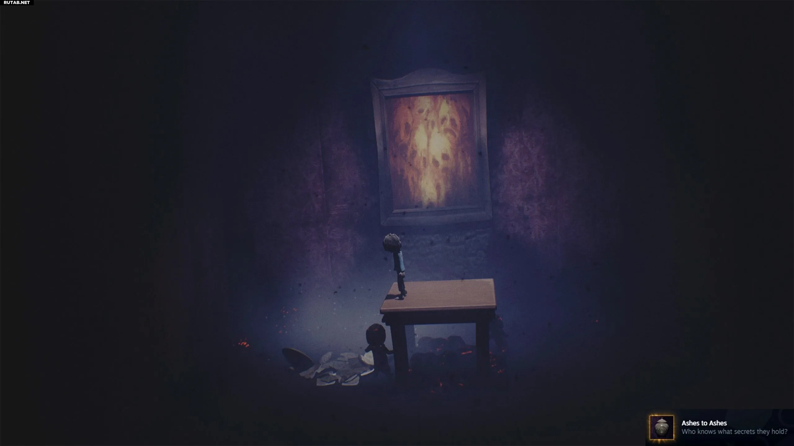 Это откроет секретную комнату слева, на столе в которой стоит кувшин. Взберитесь на стол и толкните кувшин, чтобы разбить его — это принесёт вам достижение Пепел к пеплу.
