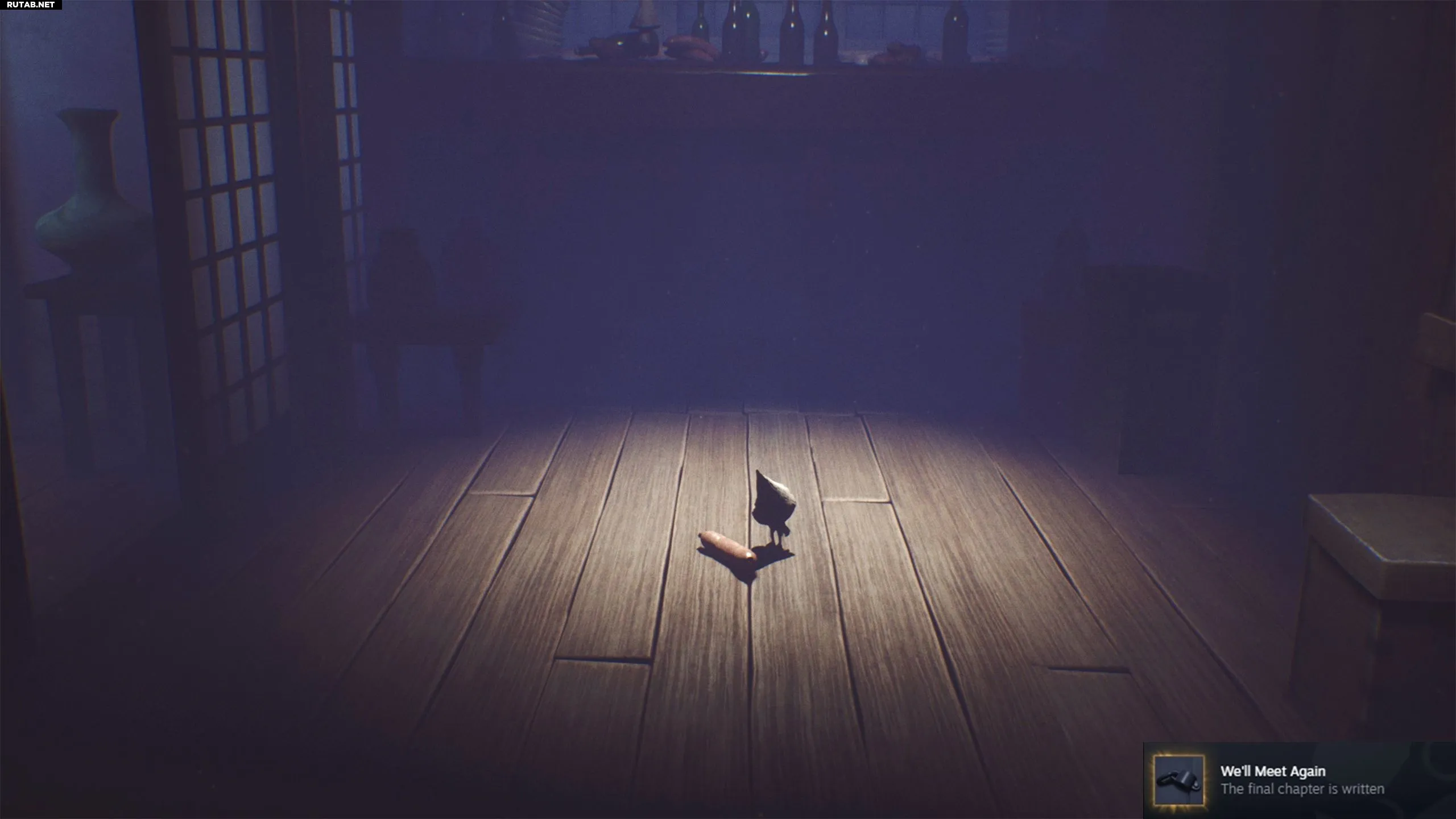 Пройдите через ещё одно отверстие слева, чтобы оказаться в той самой комнате, где Шестая потеряла контроль и съела Нома, которым, как выясняется, был Беглец. Глава «Резиденция» заканчивается тем, что Ном (Малыш) смотрит на сосиску на полу, и вы получите достижение Мы встретимся снова.