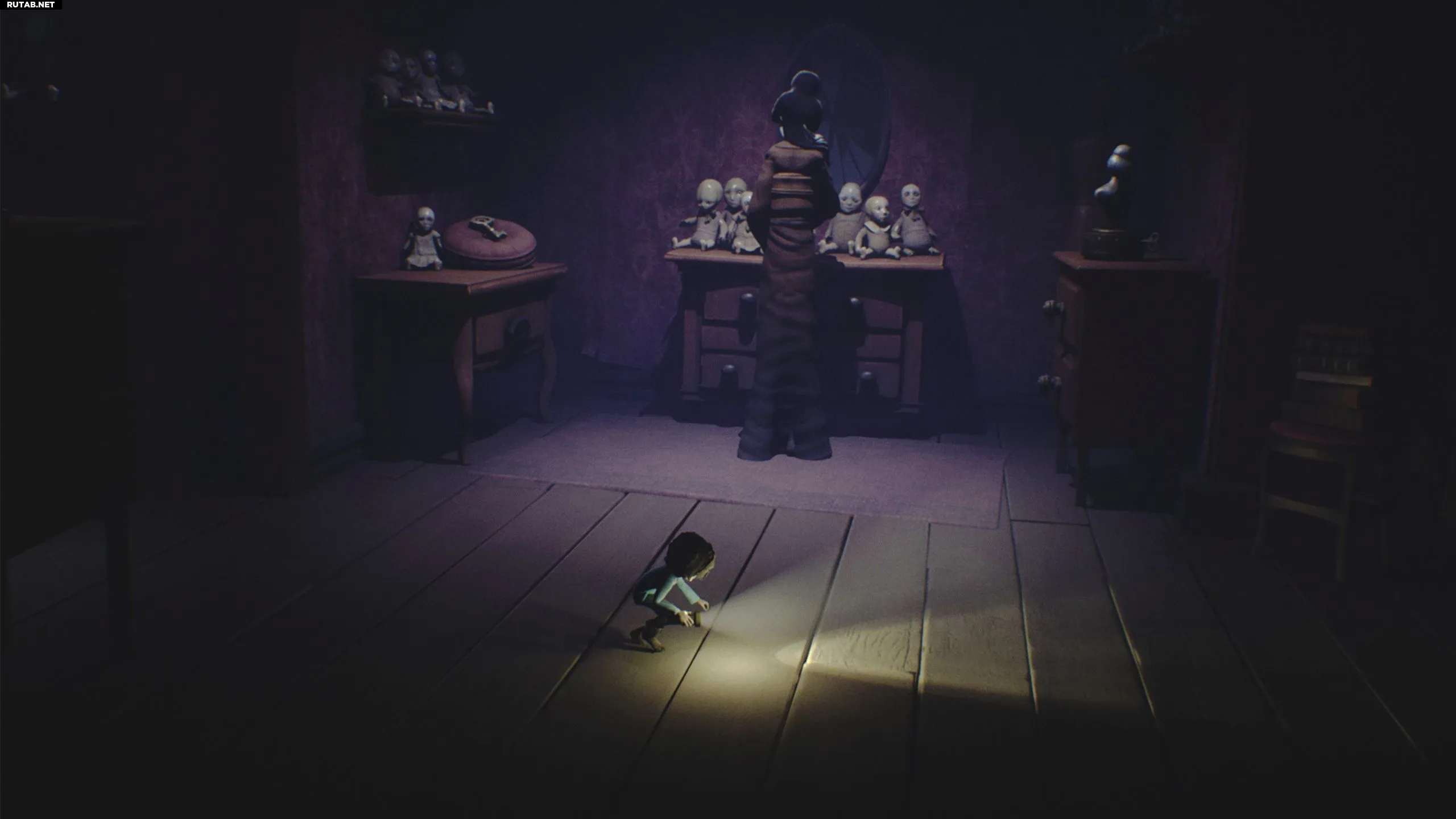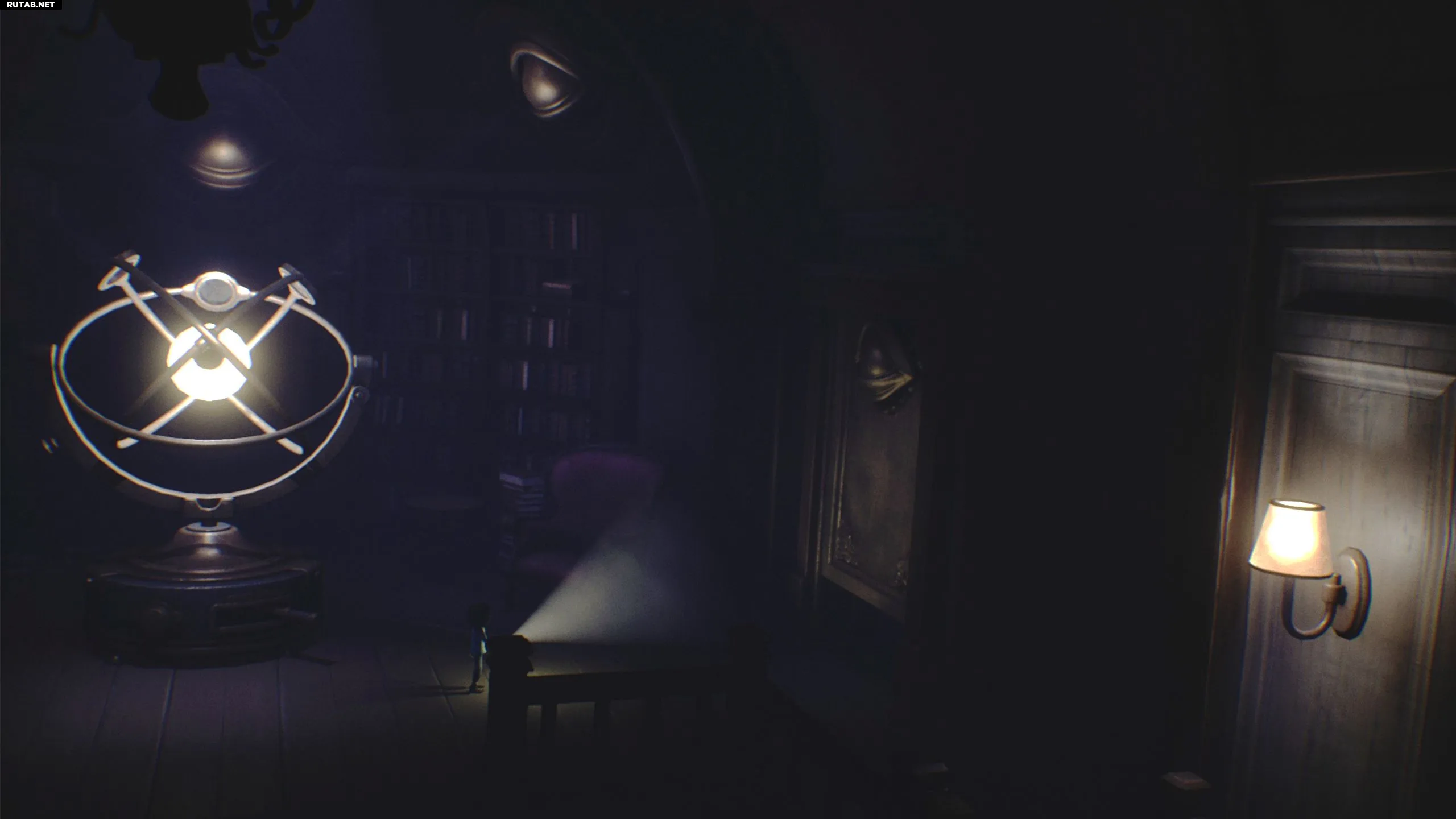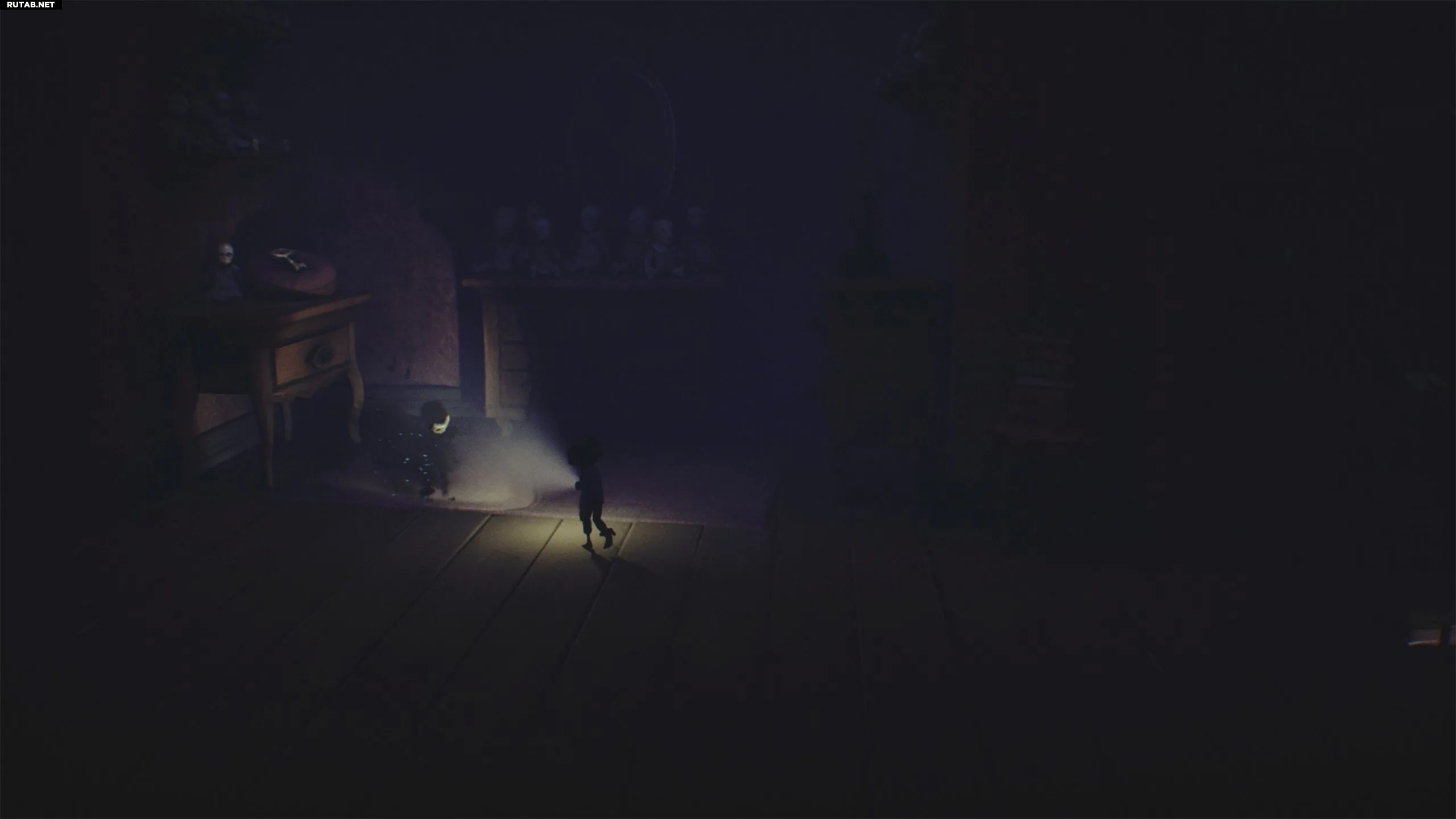 Спуститесь на нижний этаж и идите налево в комнату, где Леди расчёсывала волосы. Немедленно бросьте книгу на пол и нацельте фонарик, так как некоторые тени атакуют Малыша.