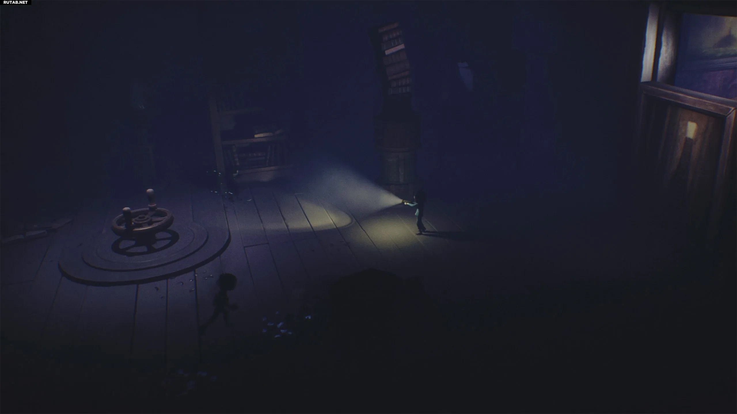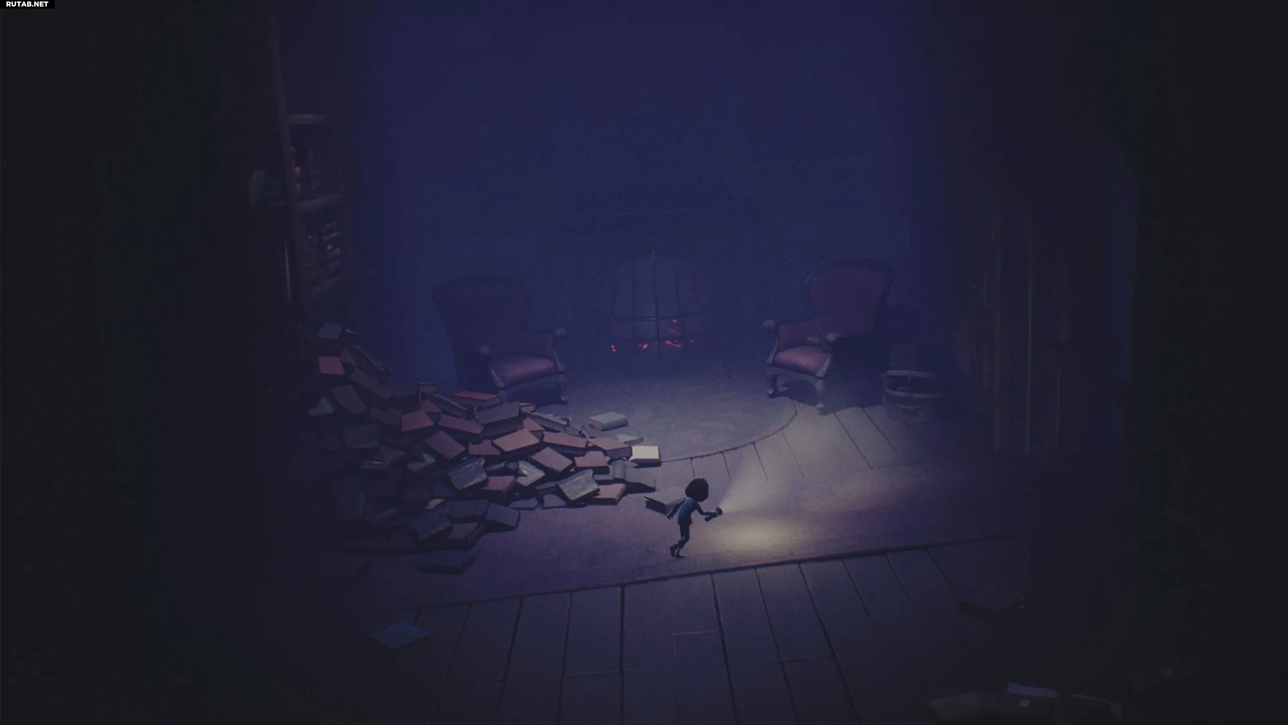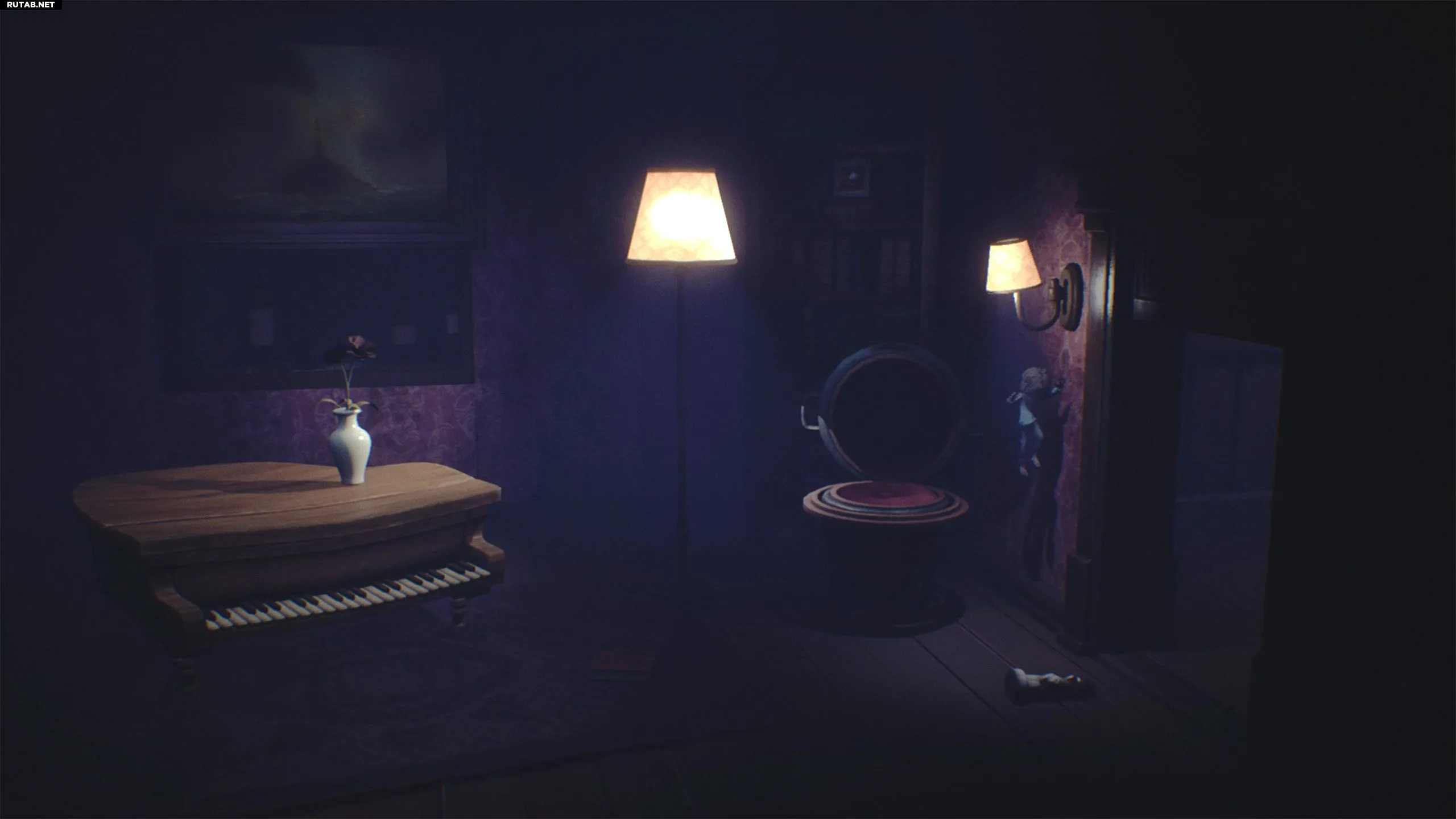 Спуститесь на нижний этаж и идите налево в комнату, где Леди расчёсывала волосы. Немедленно бросьте книгу на пол и нацельте фонарик, так как некоторые тени атакуют Малыша.
