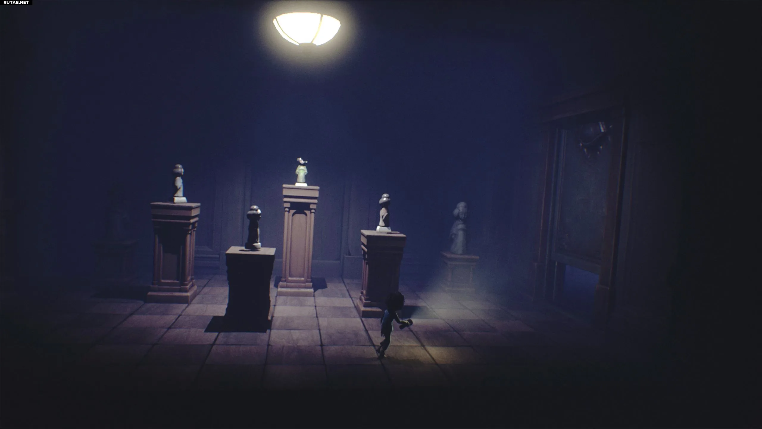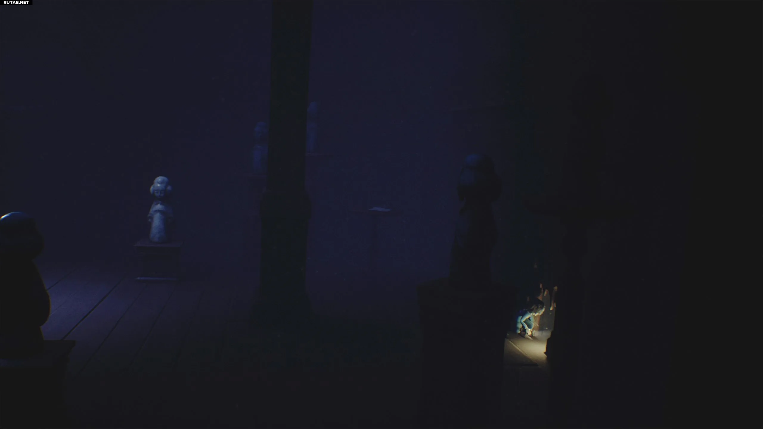 Включите фонарик и перейдите в следующую комнату, заполненную статуями.