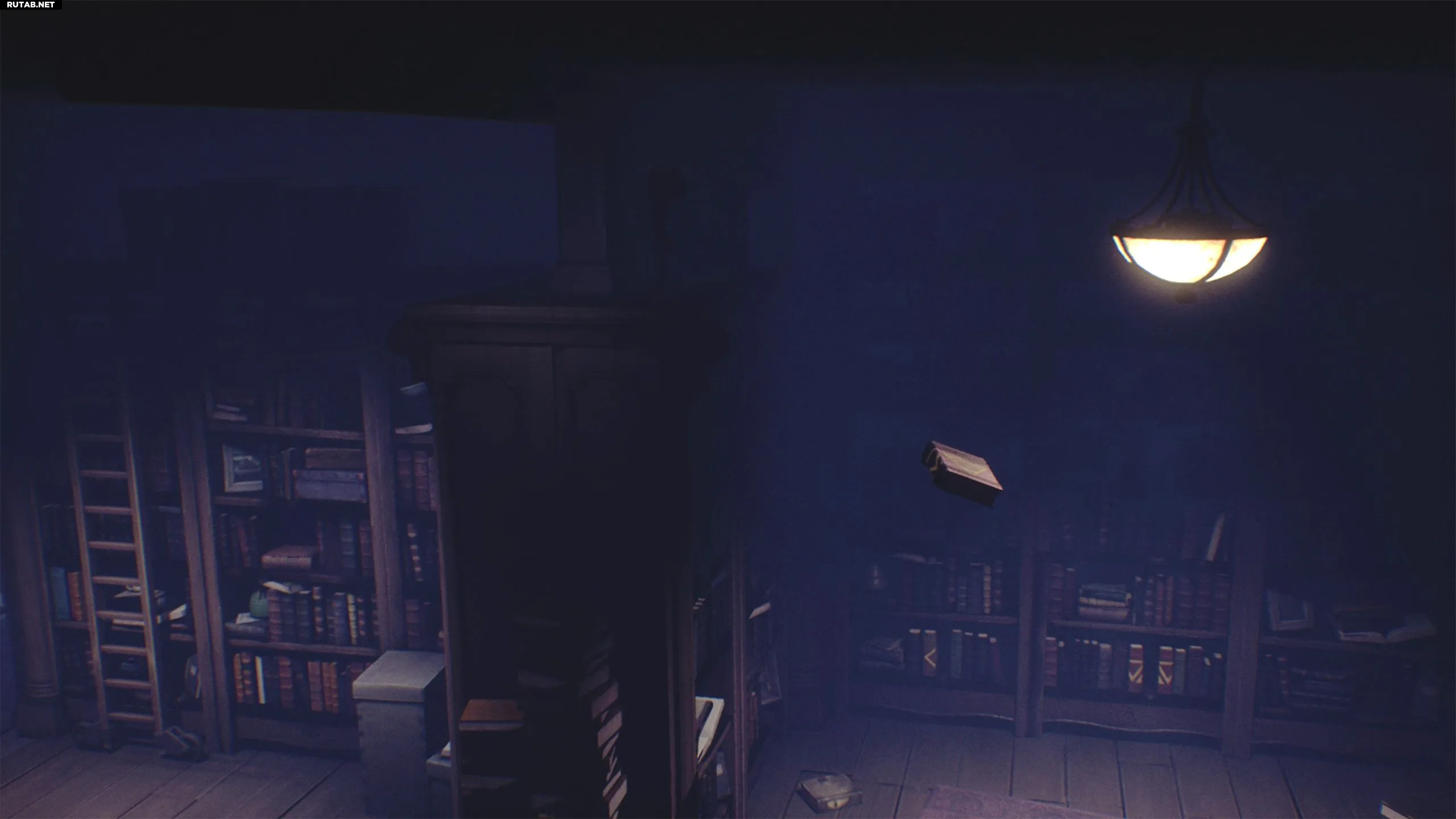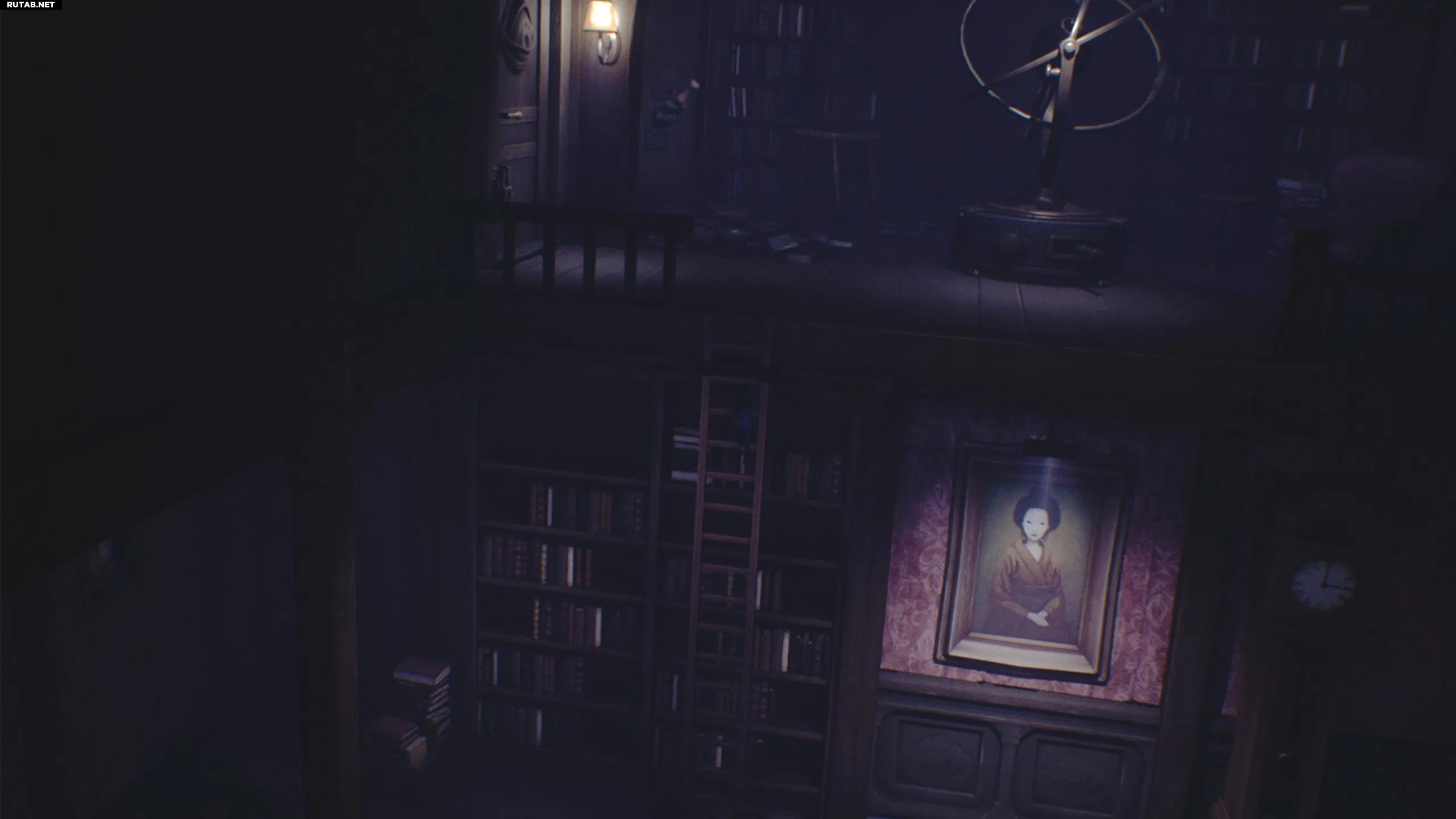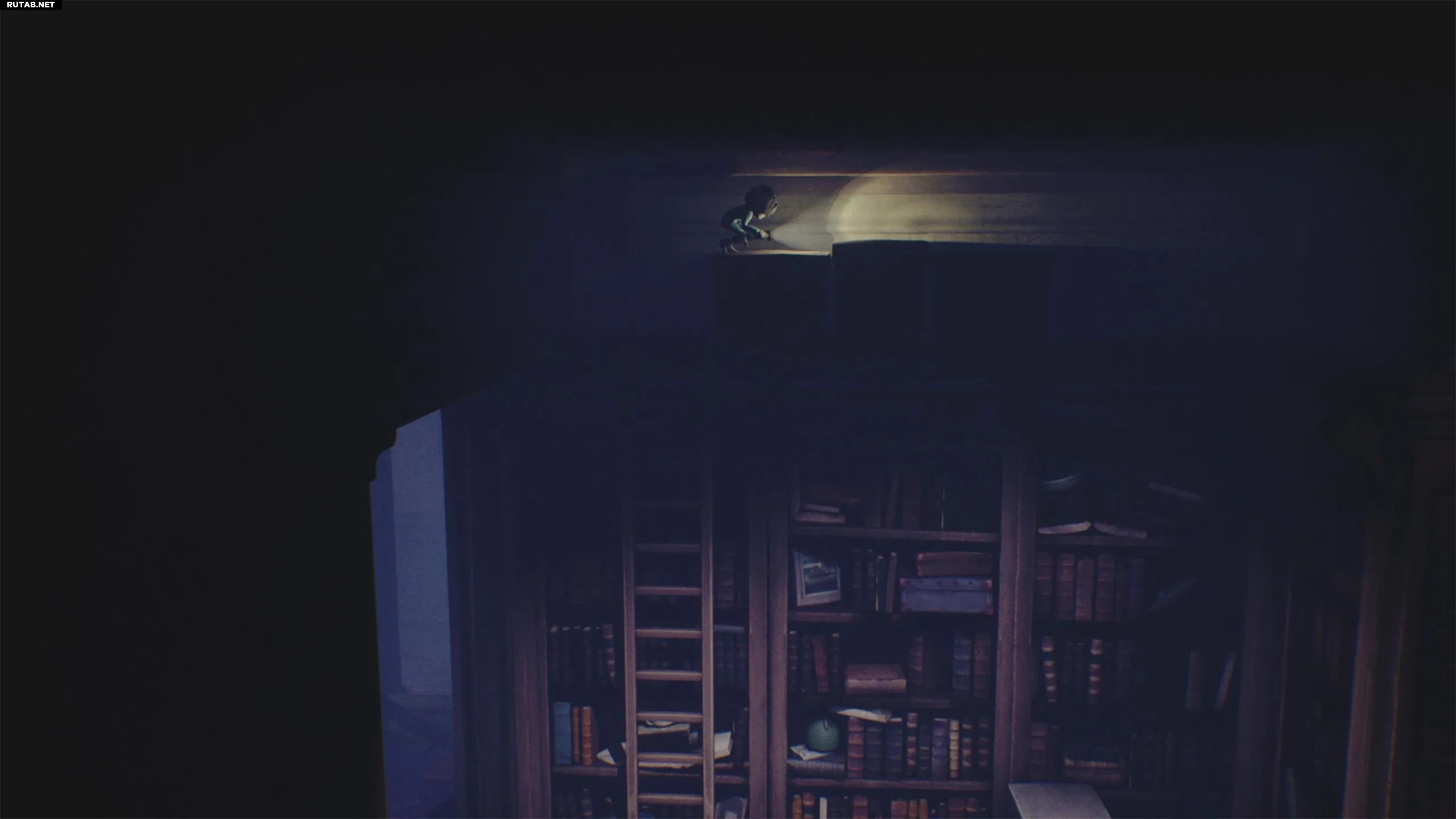 Снова поднимитесь по лестнице и идите направо, чтобы войти в библиотеку. Передвиньте лестницу влево и взберитесь по ней.