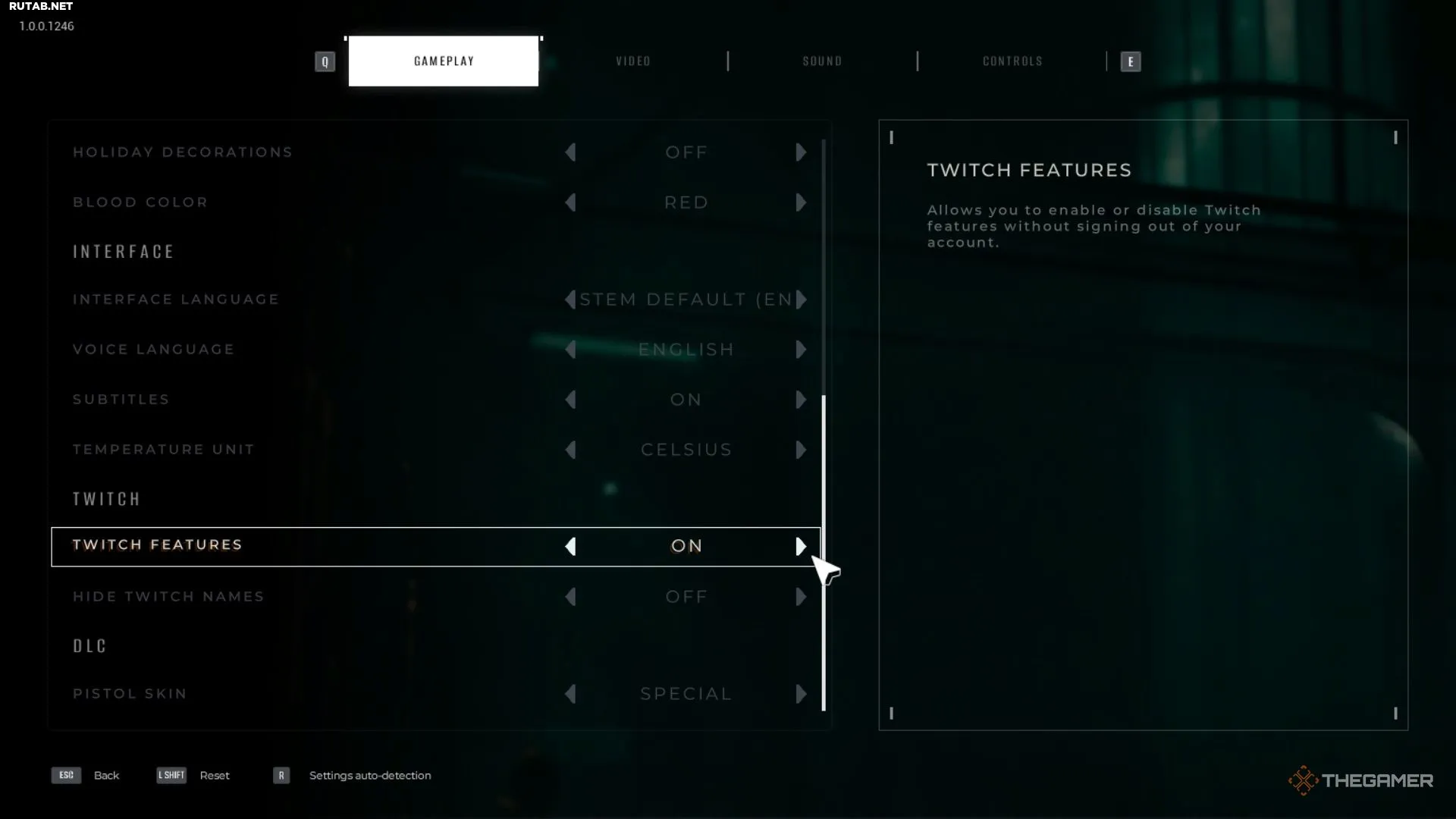 - Перед началом стрима зайдите в настройки Quarantine Zone, раздел «Геймплей» (Gameplay).