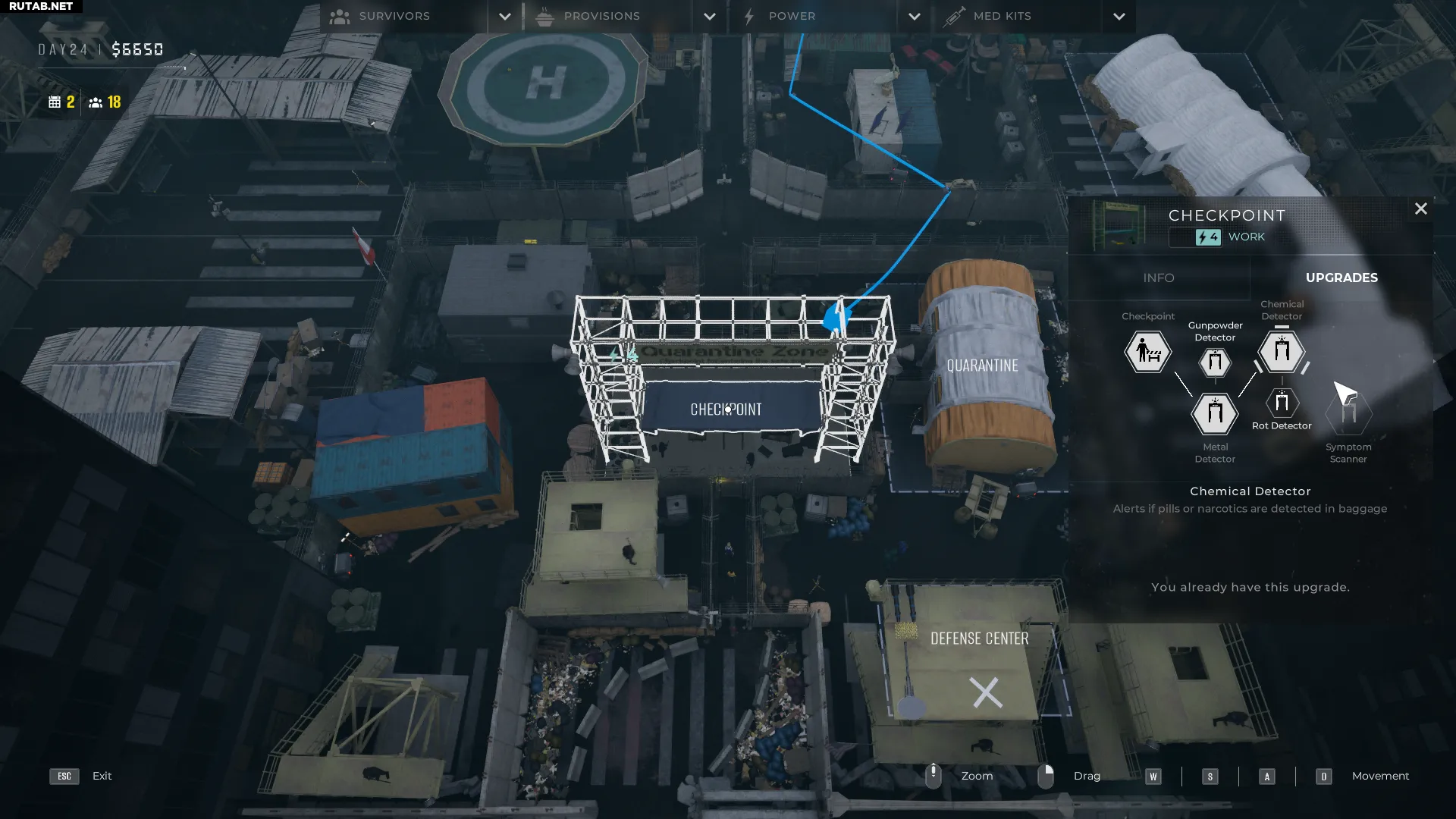 В режиме строительства можно улучшить детектор на КПП. Доступны апгрейды, которые добавляют индикаторы для металла, пороха, химикатов и гнили. Если детектор срабатывает, вы сразу знаете, что у проверяемого человека есть контрабанда.