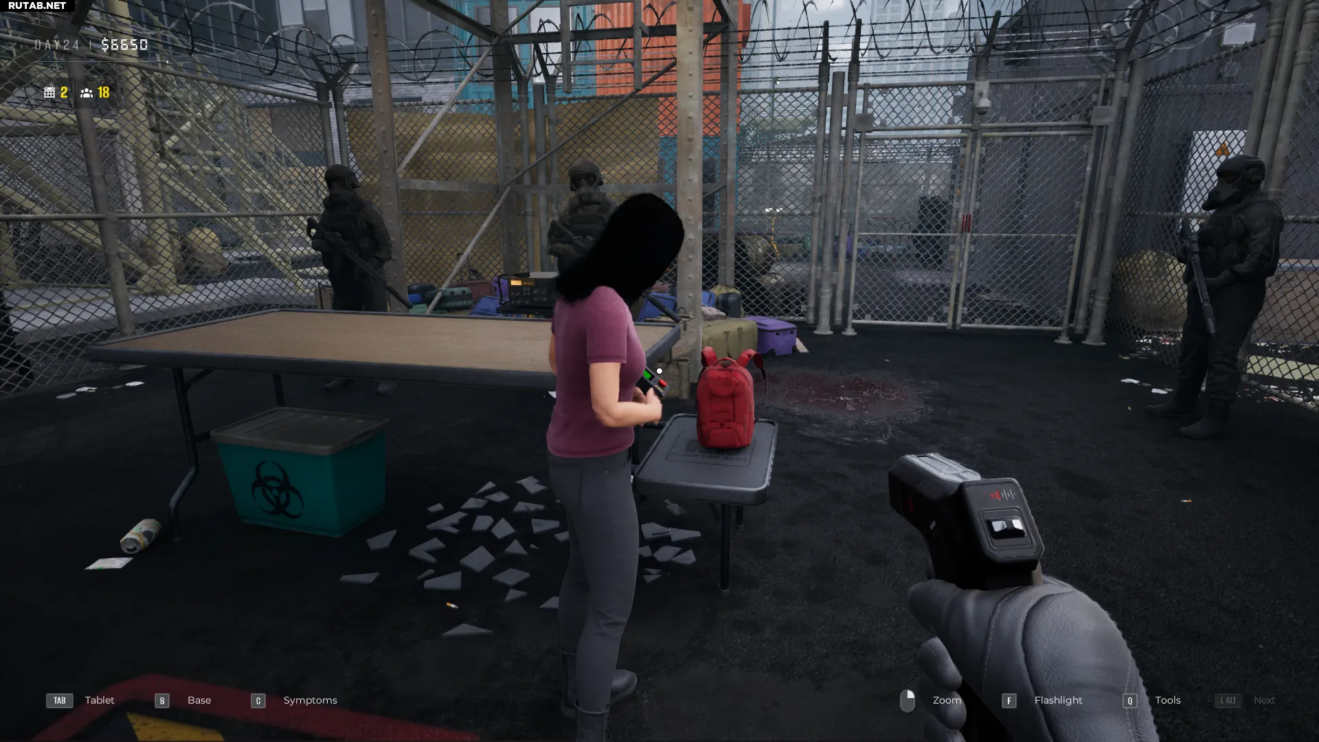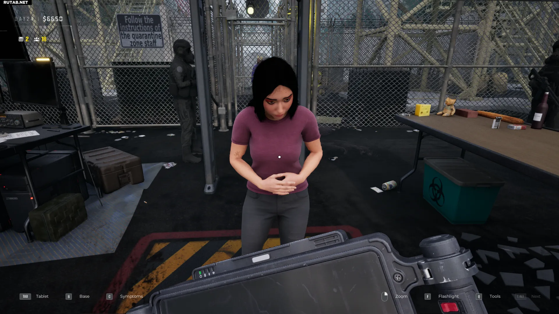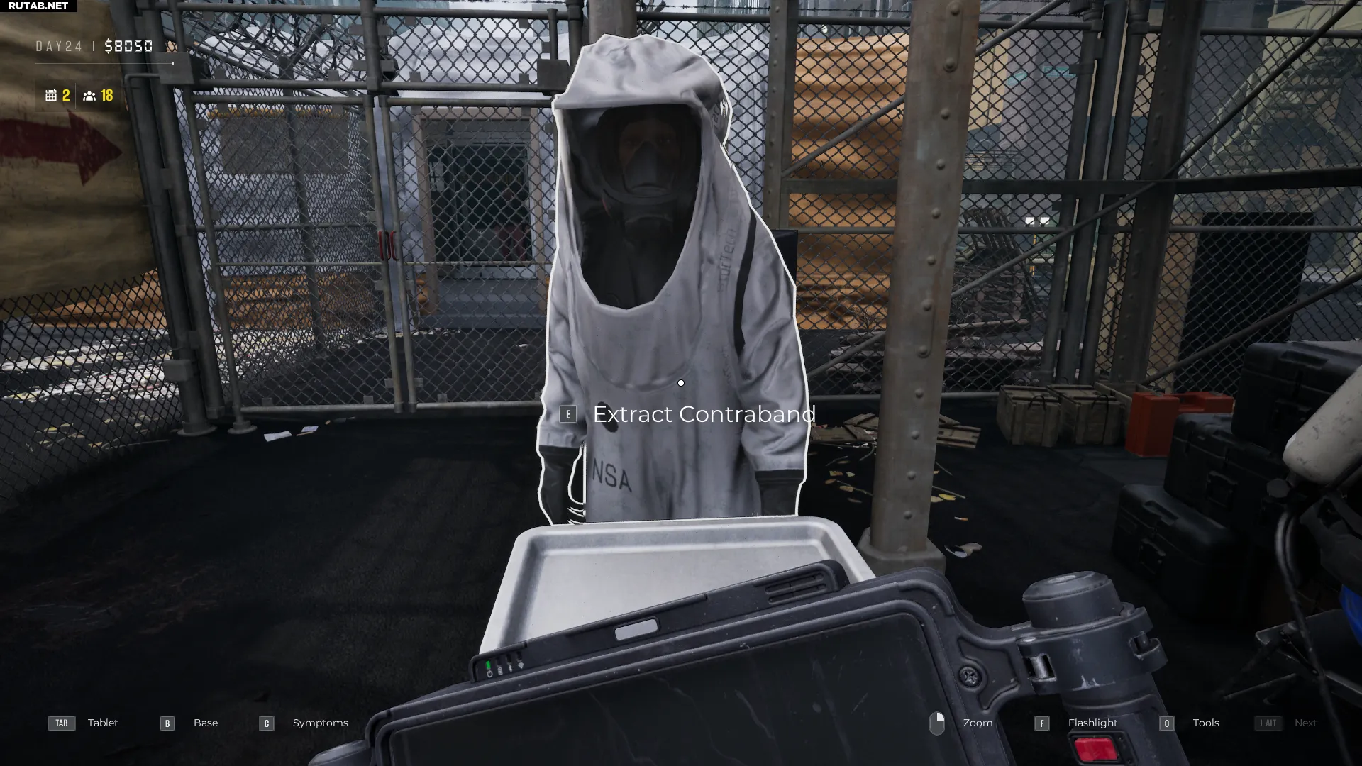 Для поиска внутренней контрабанды понадобится портативный рентгеновский сканер, который открывается по ходу игры. Особое внимание уделяйте выжившим, которые периодически сгибаются от боли — это может быть признаком спрятанного внутри предмета. Обнаружив внутреннюю контрабанду, поговорите с человеком в белом защитном костюме и попросите его извлечь предмет.