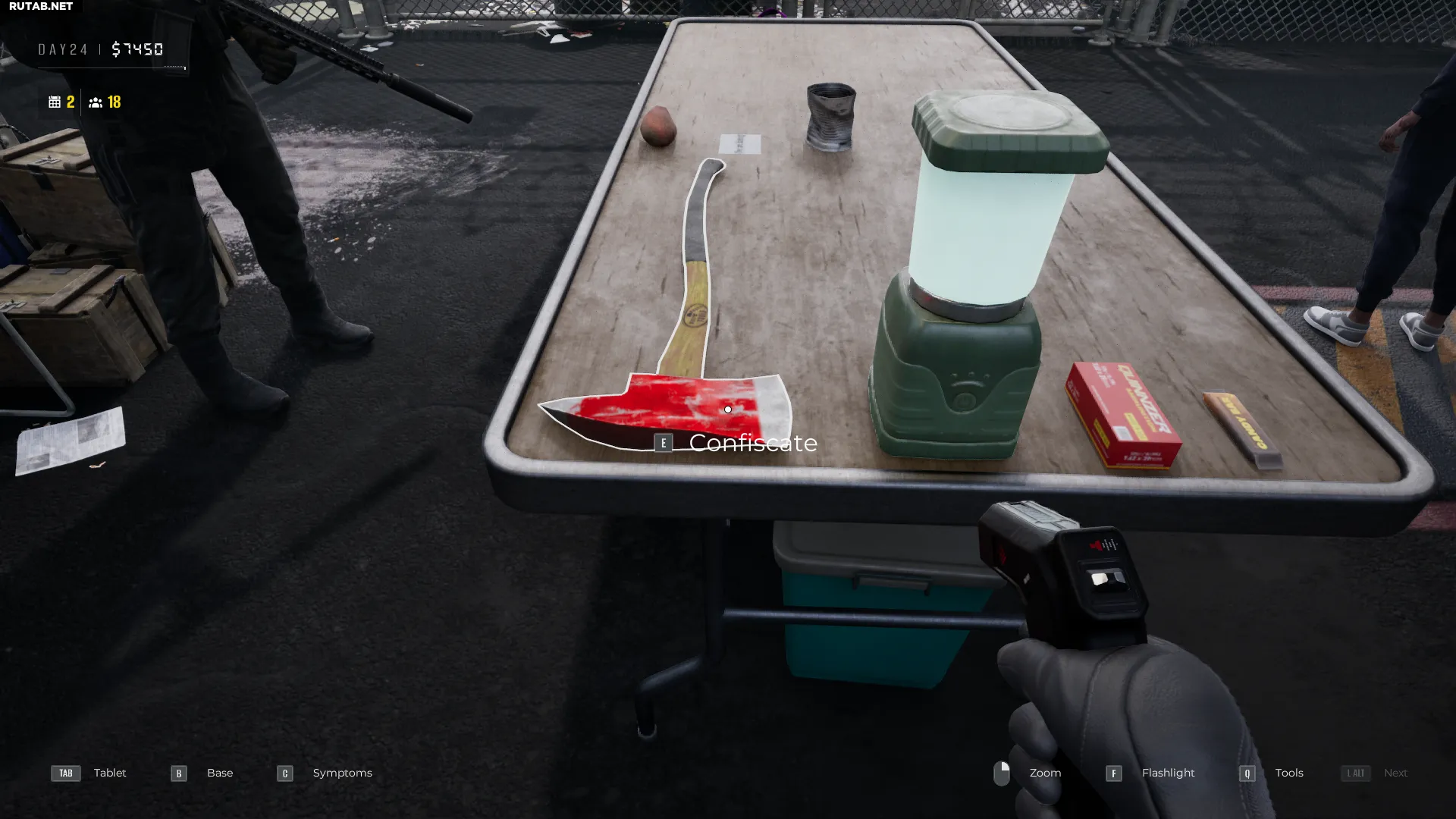 Контрабанда бывает двух видов: внешняя (в багаже) и внутренняя (спрятанная внутри тела). После прохождения металлодетектора всегда проверяйте багаж выжившего. Все вещи окажутся на столе — внимательно изучите их на наличие запрещённых предметов.