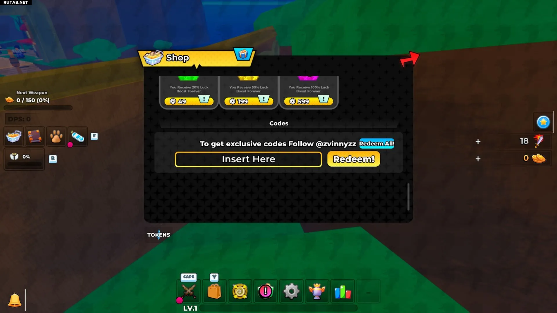- Прокрутите меню магазина вниз до поля для ввода кодов.