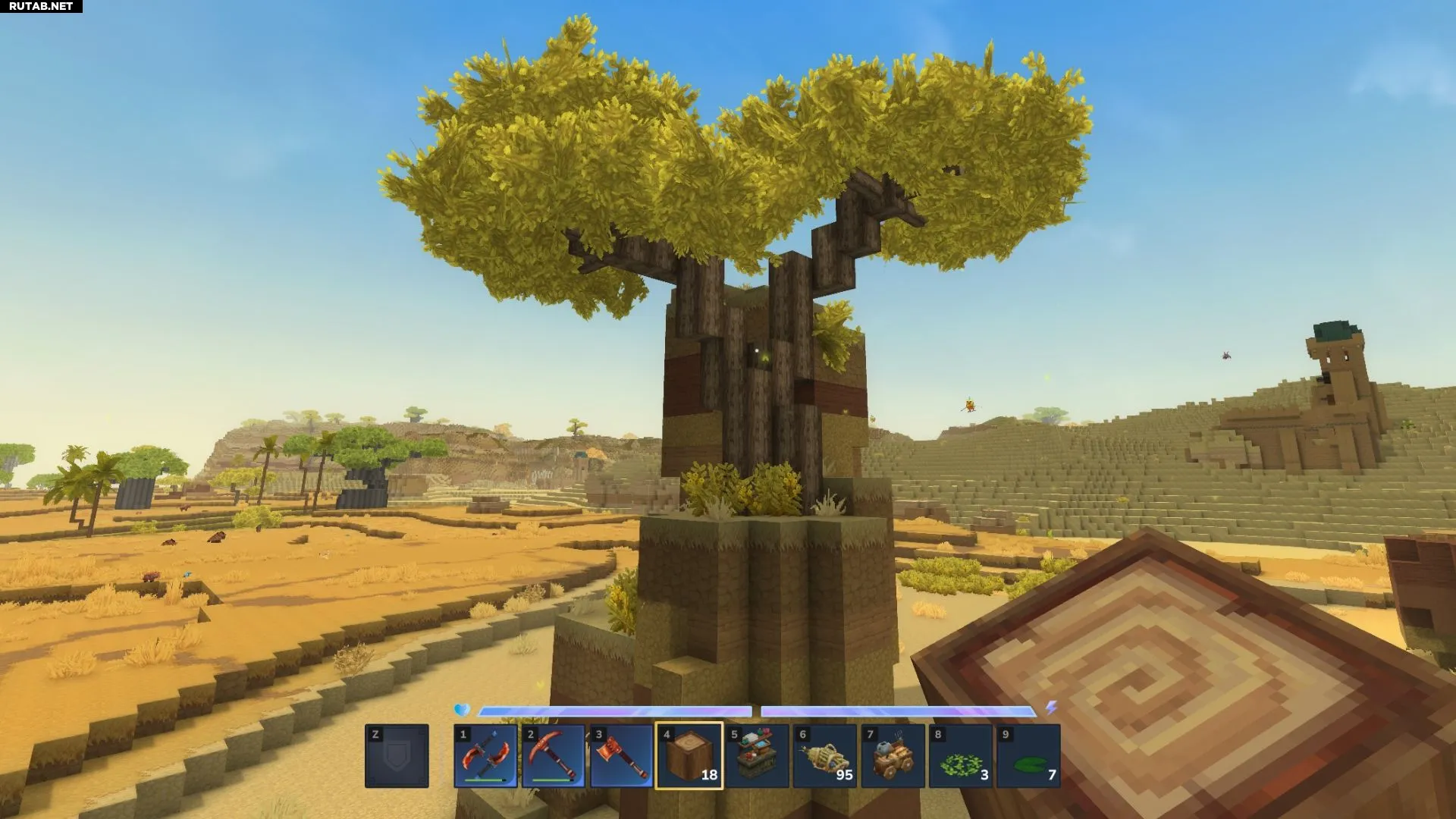 Есть только два вида деревьев, которые можно срубить топором, чтобы получить сухую древесину в Hytale: Сухие деревья (Dry trees) и Бутылочные деревья (Bottletrees). И те, и другие можно найти в биоме Золотых степей (Golden Steppes) Зоны 2 «Воющие пески» — пустынной области игры. Любой из этих типов подойдет для улучшения фермерского верстака до 7-го уровня.