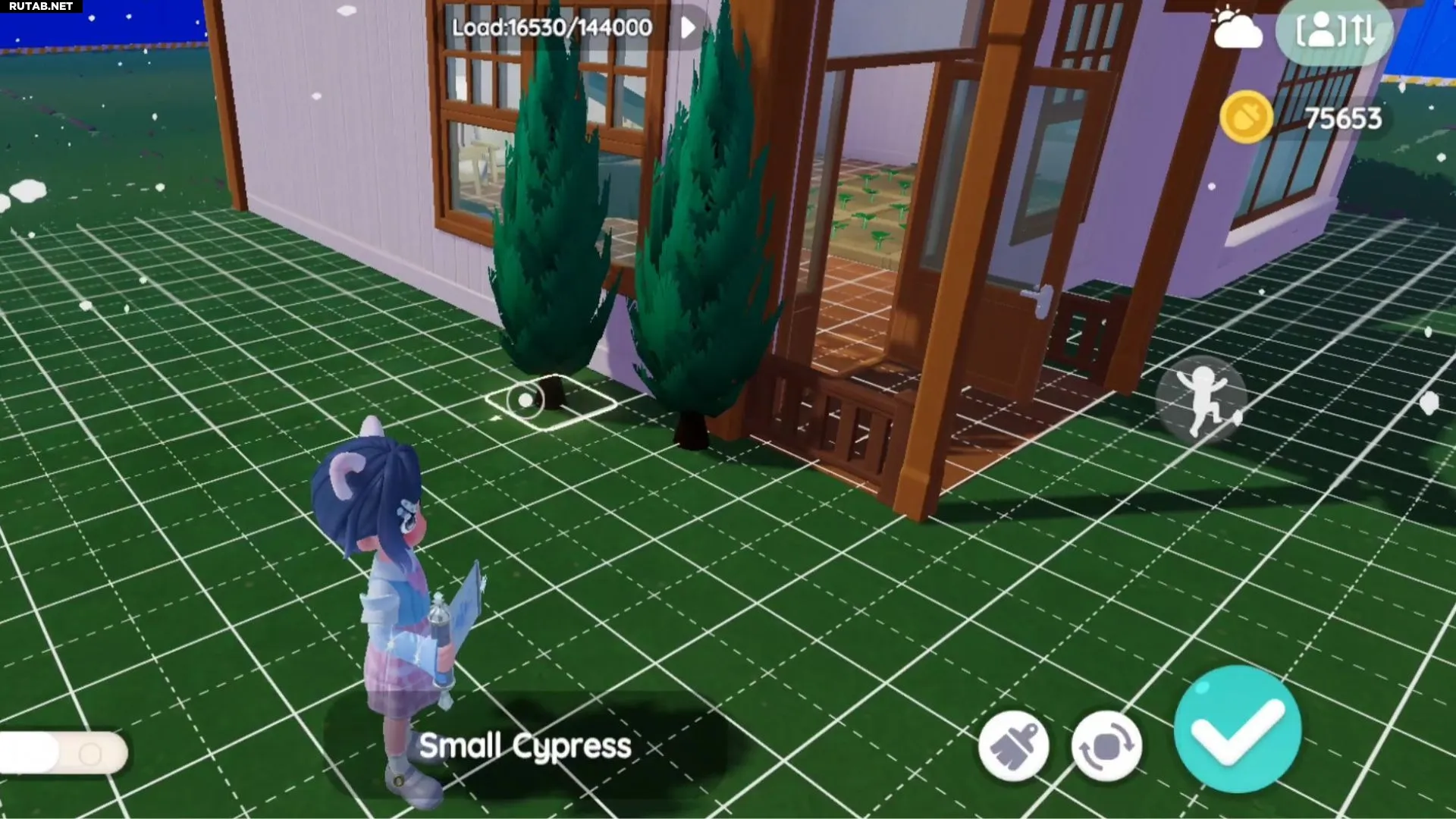 Теперь нажмите на растение, которое хотите разместить. Выбранное растение появится на экране перед вами, и вы сможете перемещать его, как предмет мебели. Пройдитесь по участку и с помощью камеры решите, куда поставить растение, затем нажмите синюю галочку в правом нижнем углу экрана, чтобы установить его.