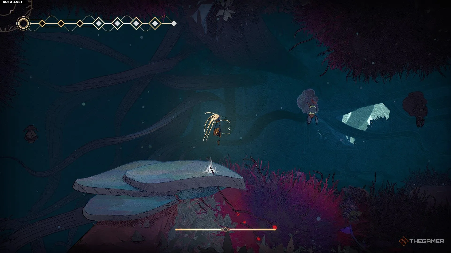 Одна из самых важных механик, которую нужно понять в начале, — это то, что попадание по врагу сбрасывает ваш двойной прыжок. Это превращает боевые столкновения в инструменты мобильности, а не просто в препятствия. Если вы будете внимательны к тому, когда и где атакуете, то сможете оставаться в воздухе дольше, чем ожидалось.