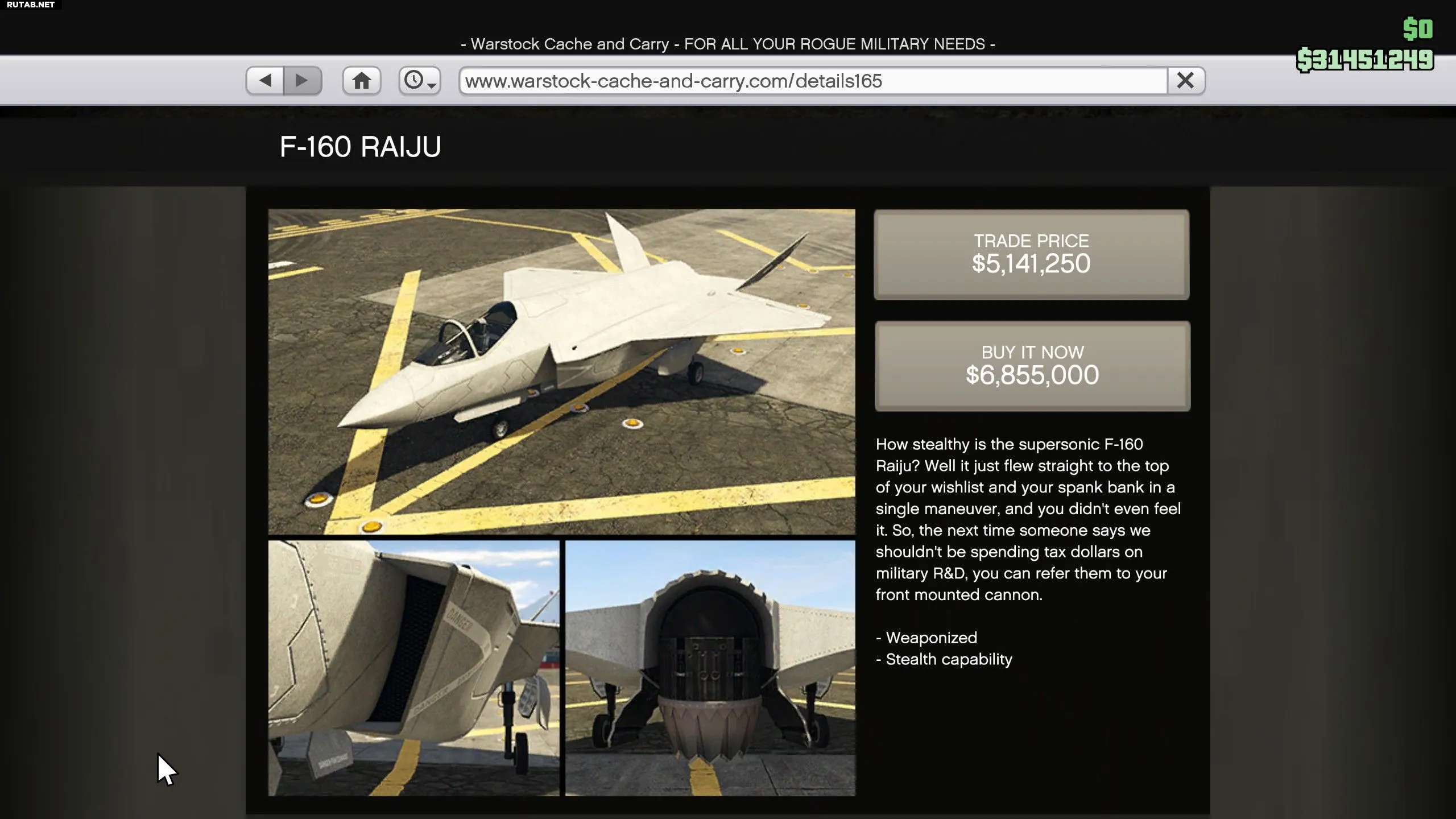 За годы в небе Лос-Сантоса соревновалось множество реактивных самолётов, но F-160 Raiju по-прежнему остаётся неоспоримым королём воздушного пространства. Raiju не только невероятно быстр, но и обладает режимом малозаметности, делающим его невидимым на радарах других игроков — до тех пор, пока не станет слишком поздно и вы не активируете системы вооружения, которые заставят ваших противников возродиться после взрыва.