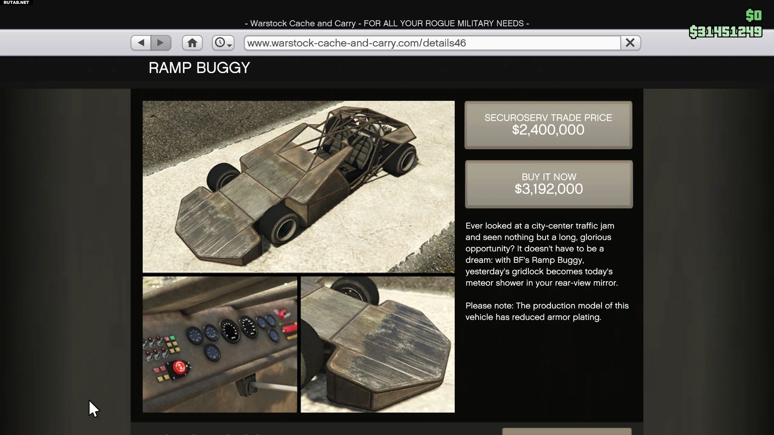Хотя в игре есть множество вооружённых и даже летающих машин, Ramp Buggy привлекает своей простой и чистой радостью. Возможно, он не обладает возможностями более дорогих и быстрых транспортных средств, но уверенно держится на дороге благодаря своей скорости. И, кажется, мы забыли упомянуть его пандус-капот?