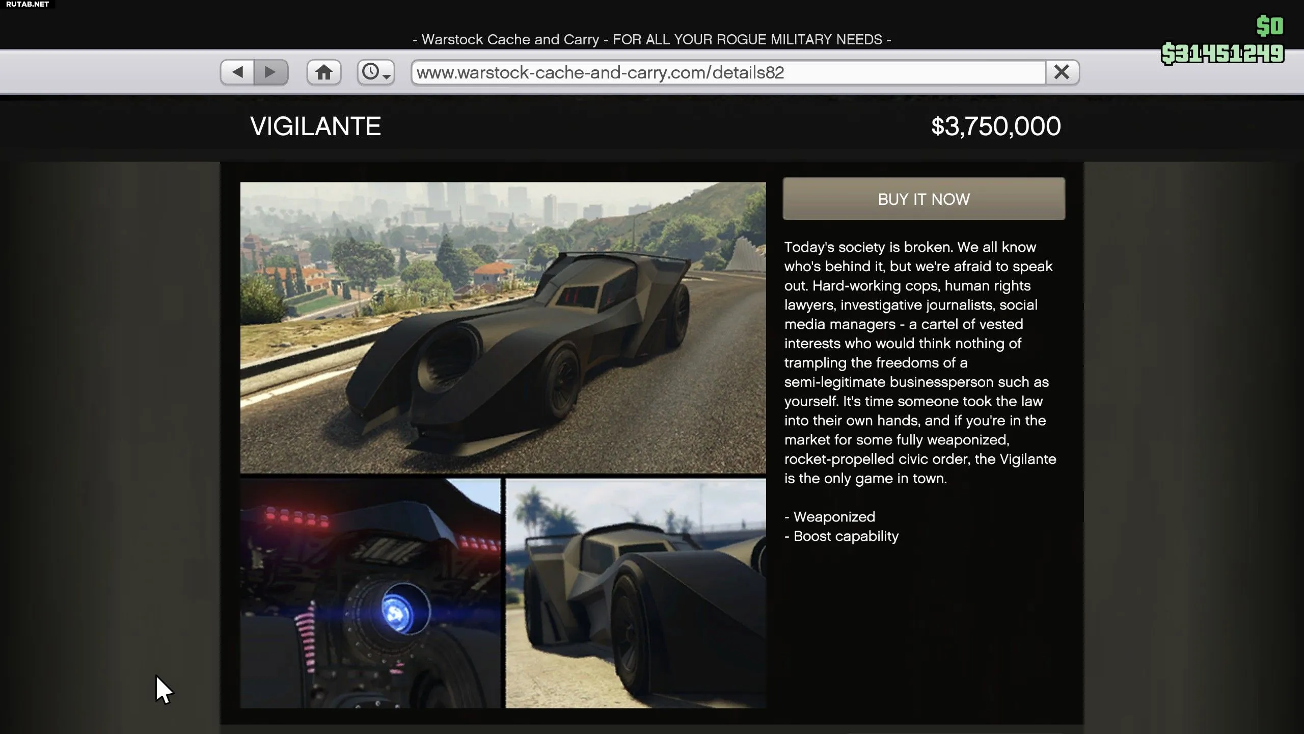 На Vigilante невероятно весело кататься — не только чтобы представить себя за рулём машины Бэтмена, но и чтобы взлетать с трамплинов Лос-Сантоса, используя ракетный ускоритель, разгоняться до запредельных скоростей и пускать самонаводящиеся ракеты по любой цели, что осмелится встать у вас на дороге.