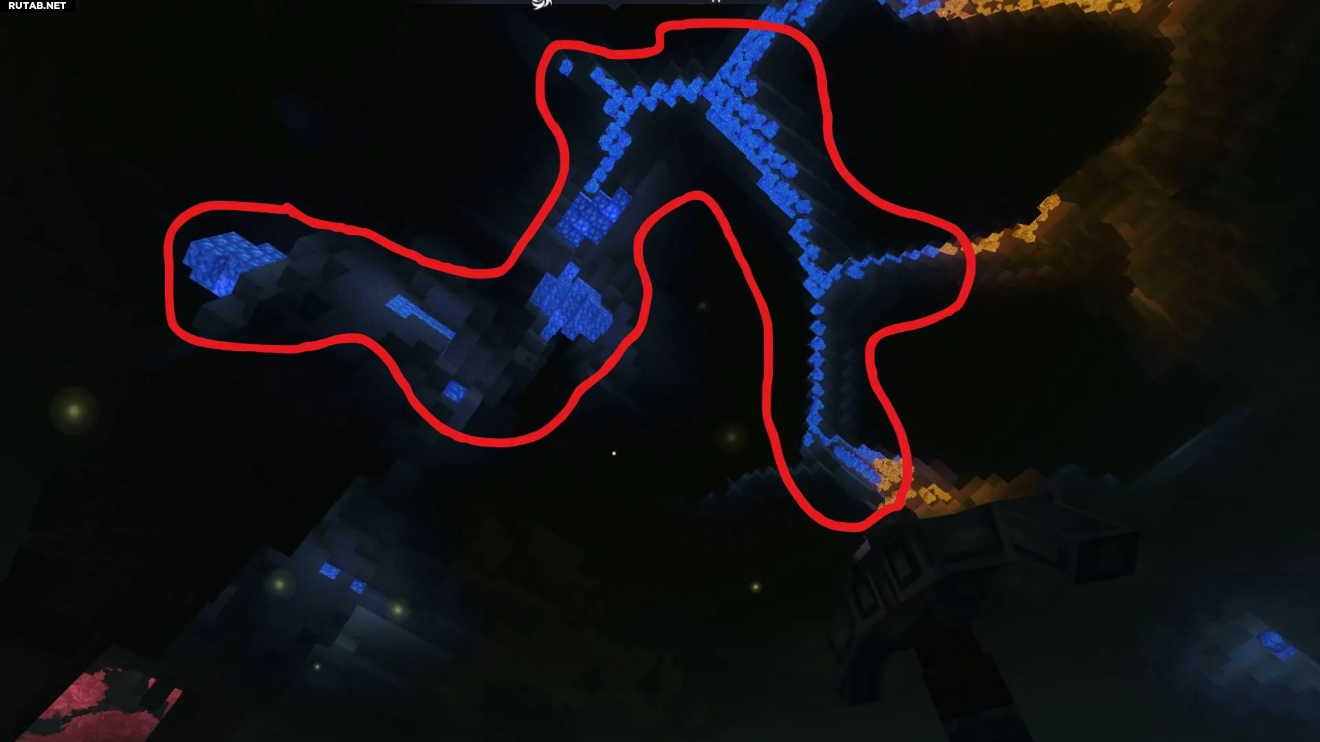 Осколки синего кристалла можно добыть, разбивая синие кристаллы, которые растут на потолке ярусных джунглей в Разорённых землях (Зона 4).