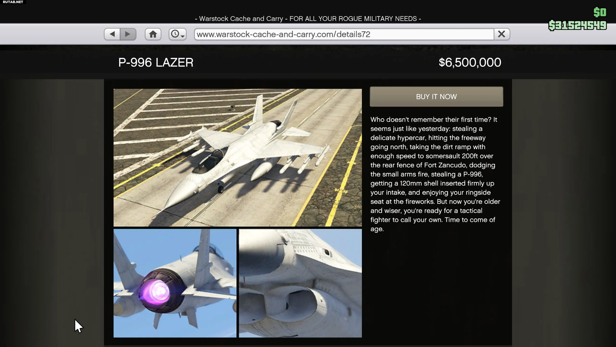 - Стоимость покупки: $750 000 на сайте Warstock Cache & Carry.