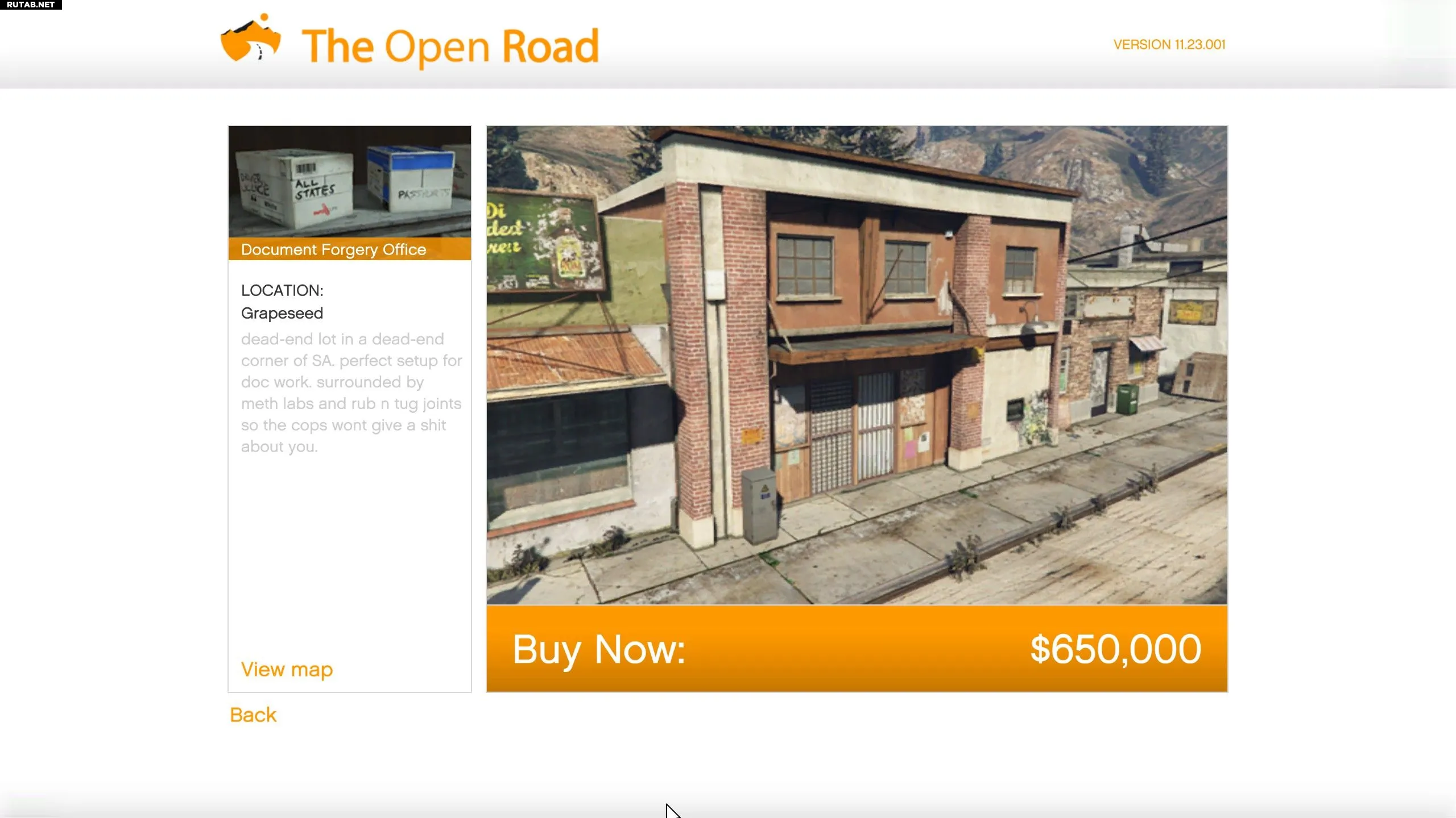 - Стоимость покупки: $650 000 через компьютер в клубе байкеров (The Open Road).