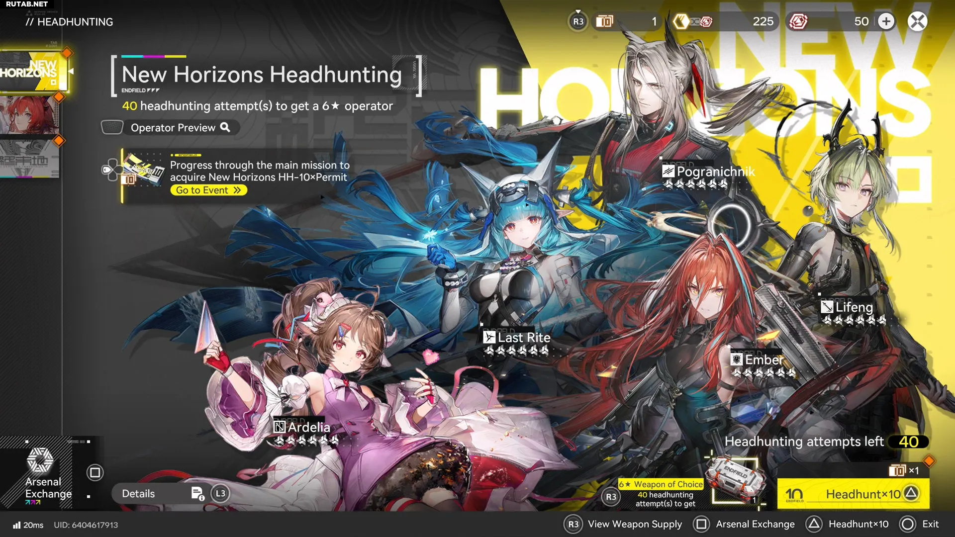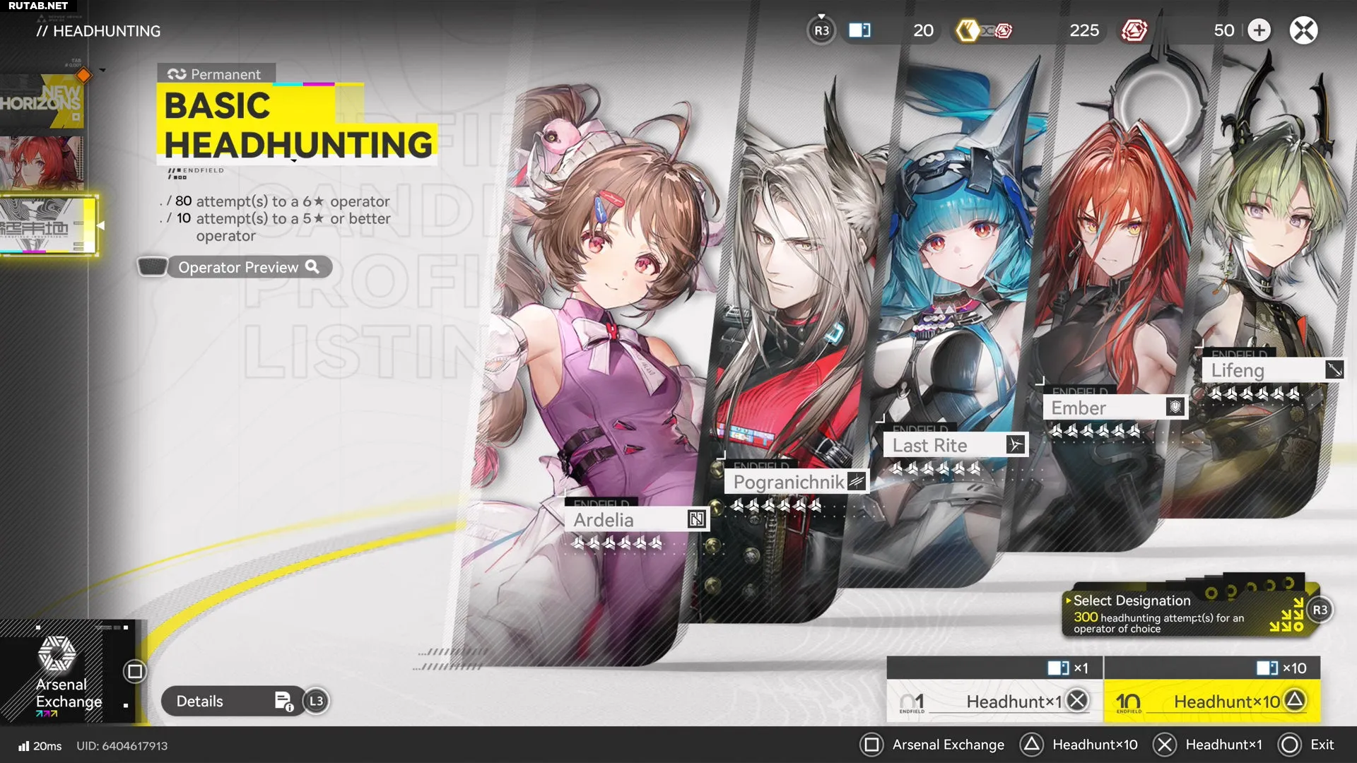 Все 6-звёздочные персонажи, не включённые в событийные баннеры, доступны в Базовом наборе — постоянном баннере Arknights Endfield. В него также входят 5-звёздочные и 4-звёздочные операторы.