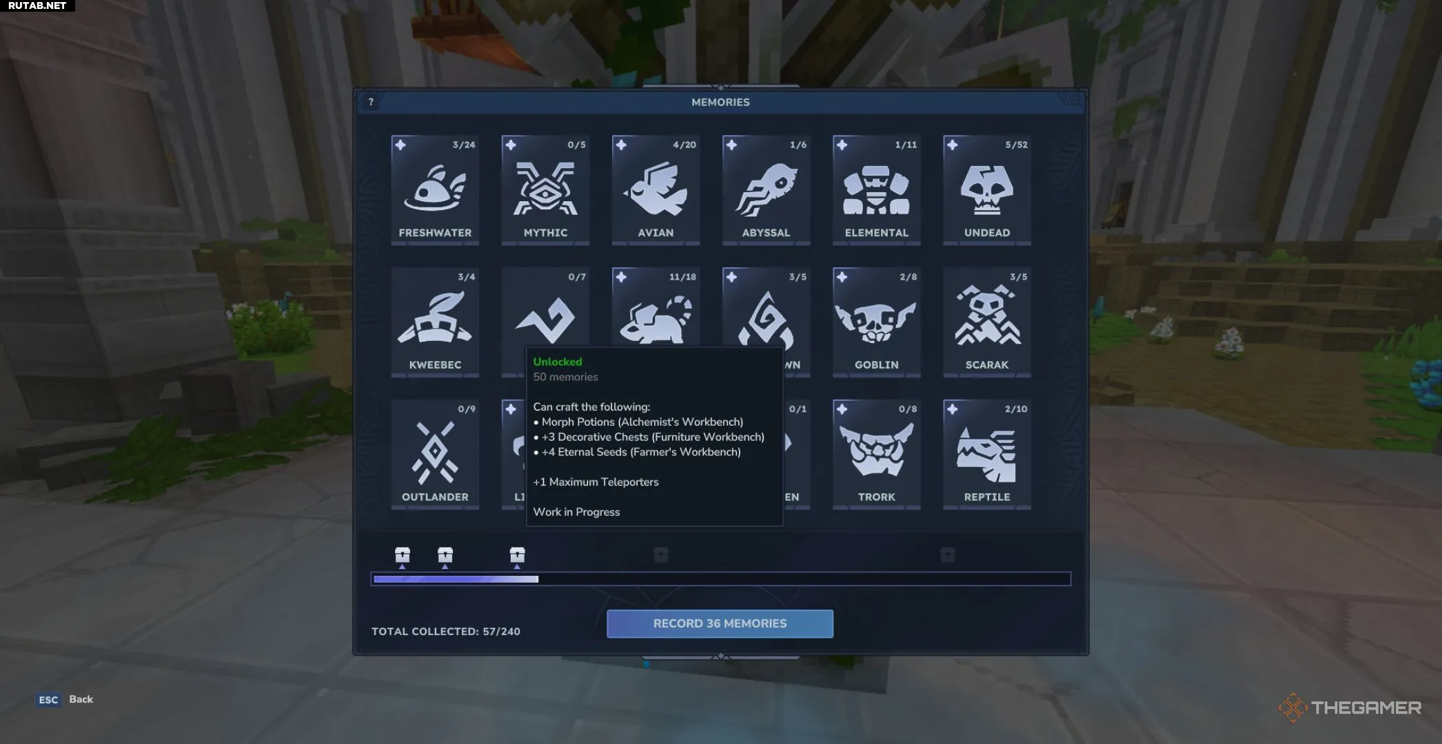 Новые Воспоминания всегда открываются, когда вы подходите к существу, которого раньше не видели, на расстояние пяти-шести блоков. Однако некоторые базовые мобы требуют как минимум двух встреч, поскольку запись Воспоминаний начинается только после взаимодействия с Сердцем Орбис.