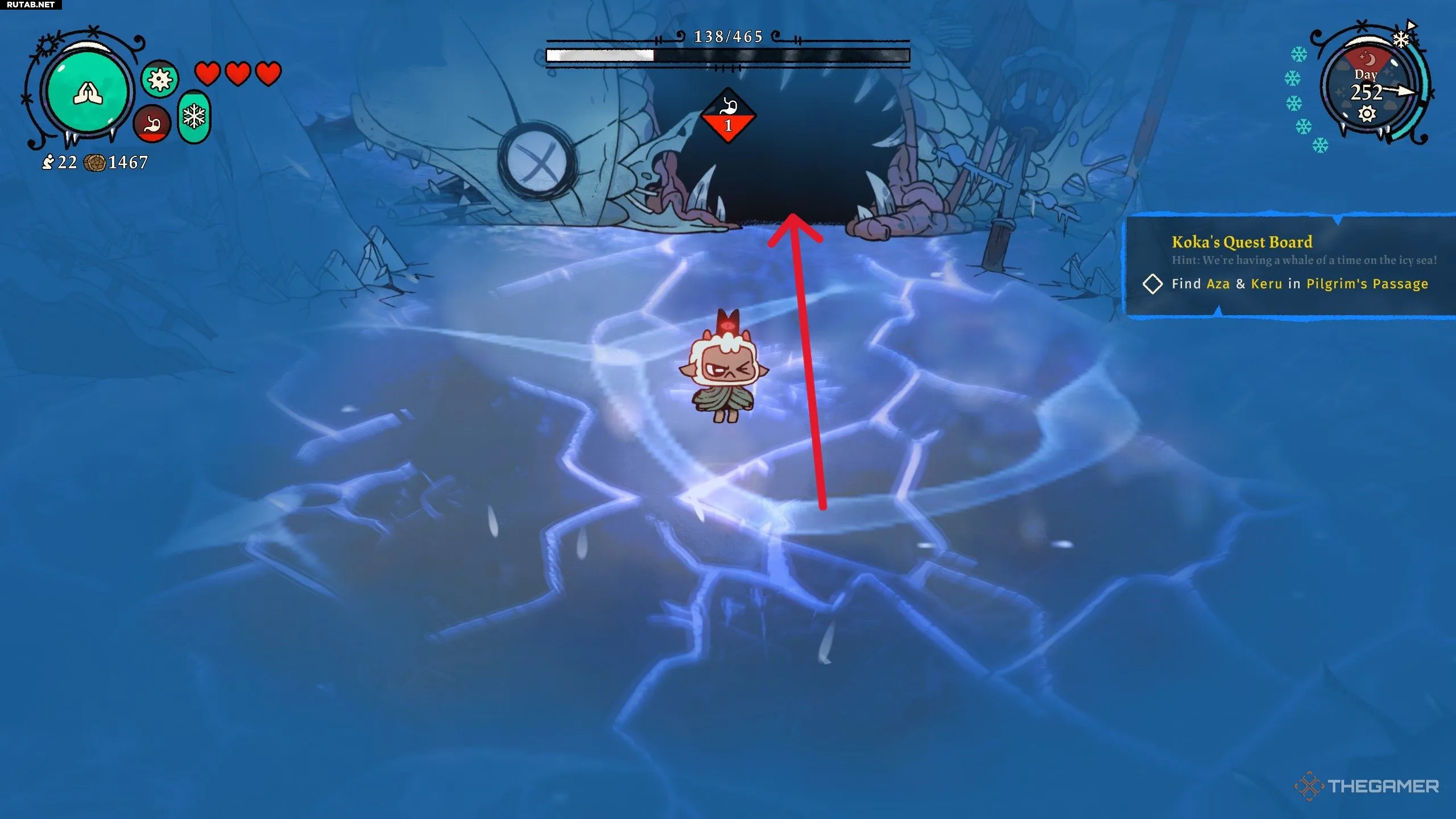 Снова вернитесь к доске Коки, чтобы получить очередной квест на поиск Азы и Керу, на этот раз в Проходе Паломника. Загвоздка в том, что найти их можно только зимой, так как вам нужно, чтобы океан замёрз, и вы смогли по нему пройти. Если вы уже прошли игру, взаимодействие со статуей Ингьи позволит мгновенно вызвать зиму, чтобы найти их.