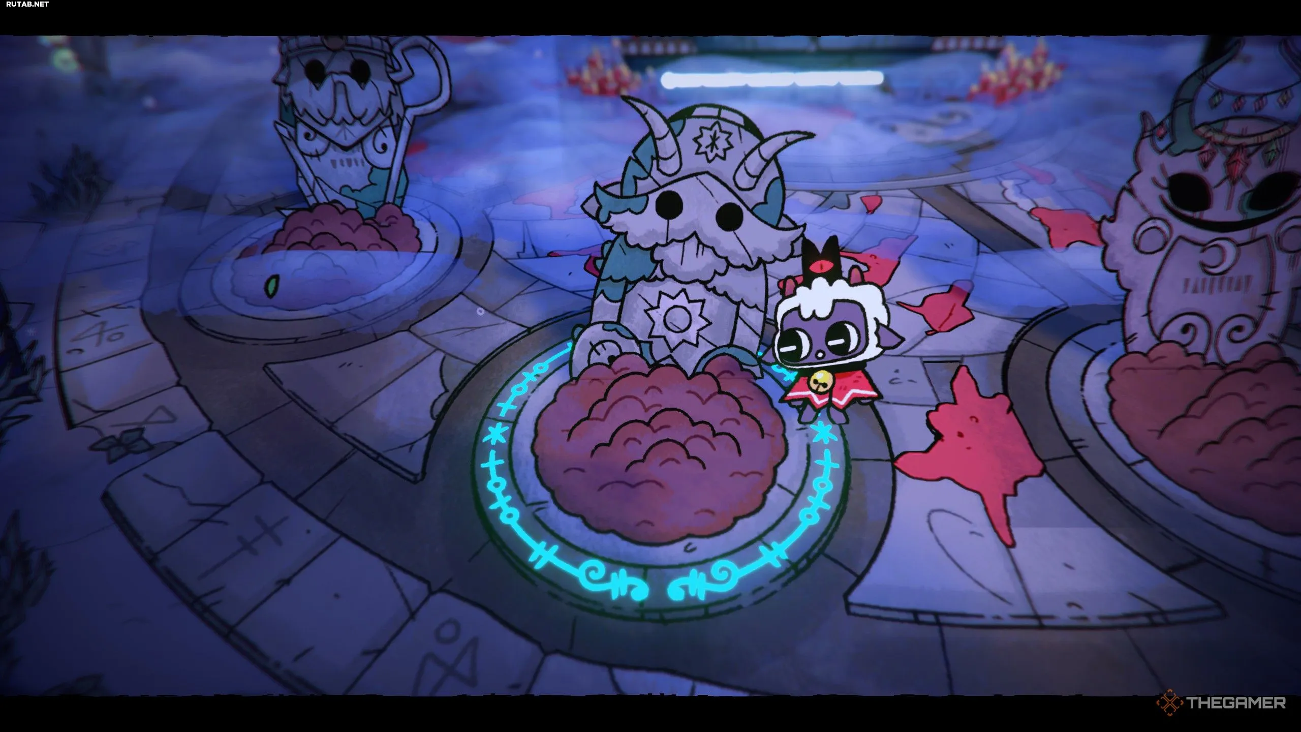 Зайдите внутрь и взаимодействуйте с пиратским черепом на груде сокровищ, чтобы снова поймать Азу и Керу. Теперь вы знаете, чего ожидать. Они пожалуются, вы вернётесь к доске заданий Коки и получите карту Таро «Лезвие для стрижки». Это особенно полезная карта Таро на раннем этапе, так как она даёт врагам десятипроцентный шанс выронить Шерсть при смерти!