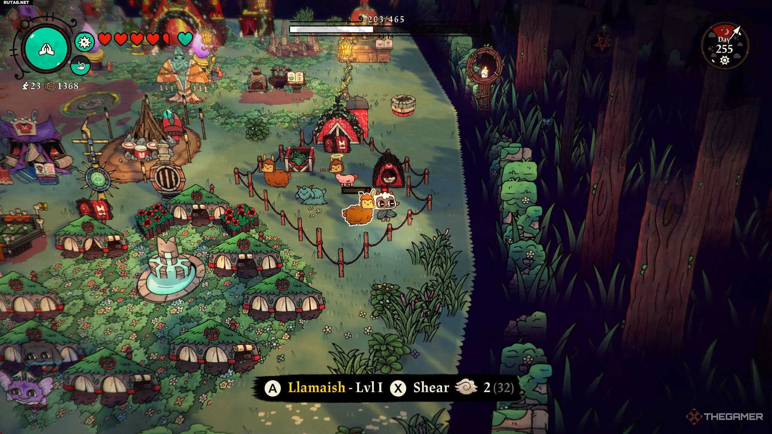 Более того, я рекомендую построить большое ранчо, если это возможно. Больше огороженного пространства означает, что вы сможете разместить больше животных, которые будут приносить вам шерсть. Кроме того, как только вы откроете и построите клетку, вы сможете разводить скот, экономя шерсть, которую потратили бы у Барака. Также стоит улучшить ранчо, когда появится такая возможность, — это позволит назначить последователя, который будет стричь животных за вас!