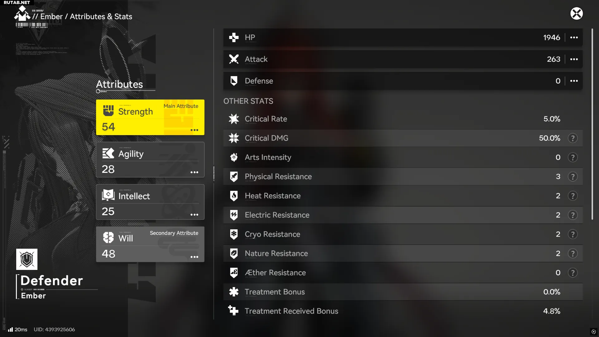 Помимо перечисленных эффектов, каждый Оператор также получает увеличение атаки на основе своего основного и второстепенного атрибута. В меню персонажа основной атрибут выделен желтым фоном, а второстепенный — серым. Чем выше эти значения, тем больше бонус к ATK получит герой.