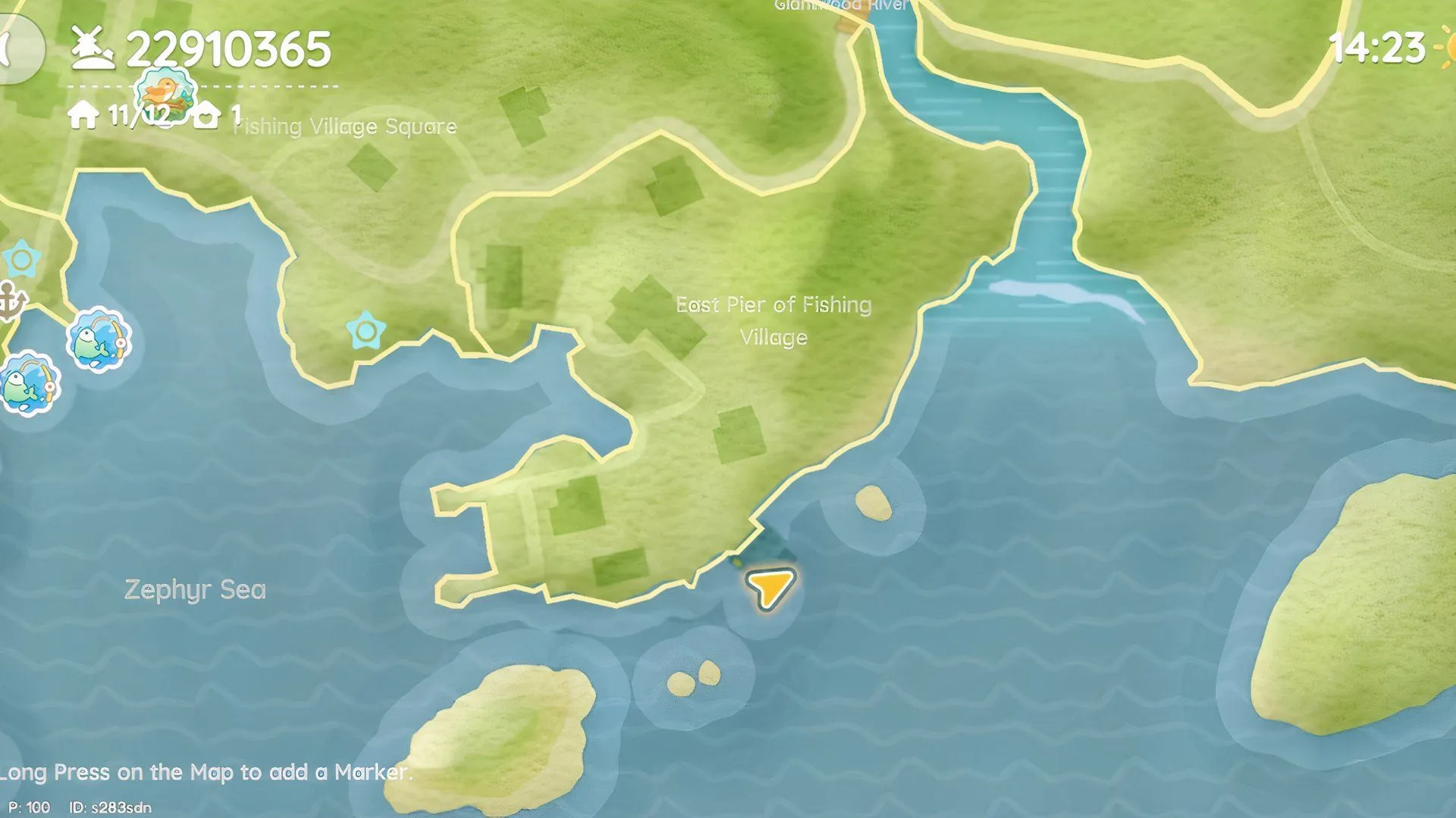| 14 | ![]() | Восточный пирс – Рыбацкая деревня | На восточной стороне, рядом с домом, который стоит над морем возле зданий у водопада. |