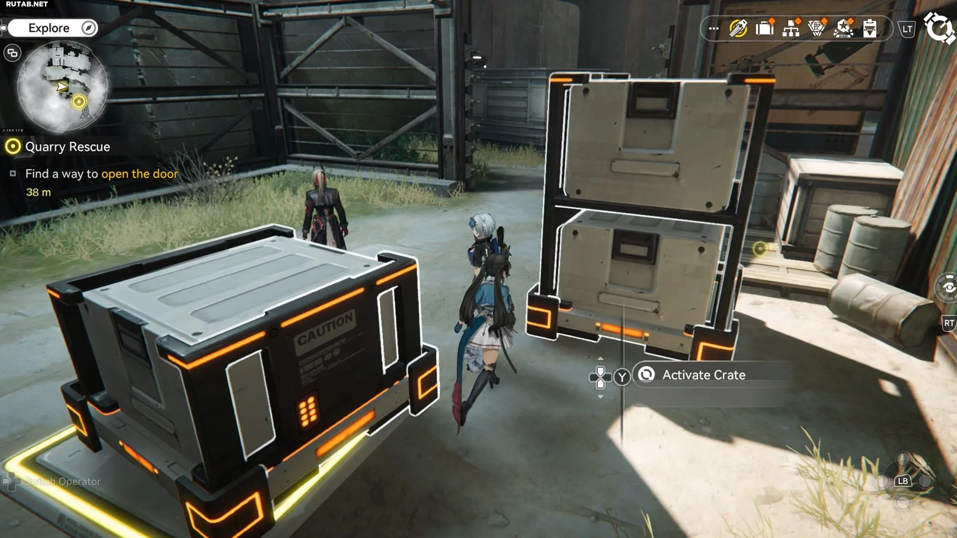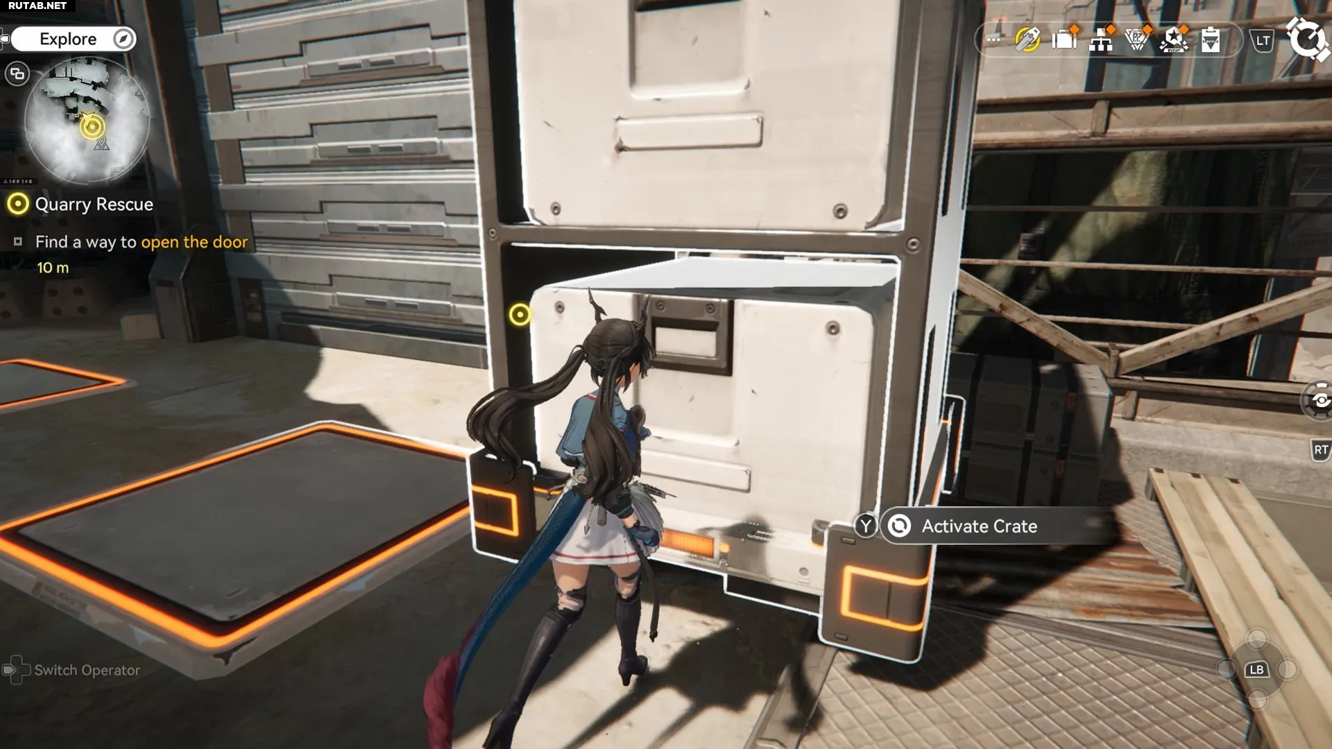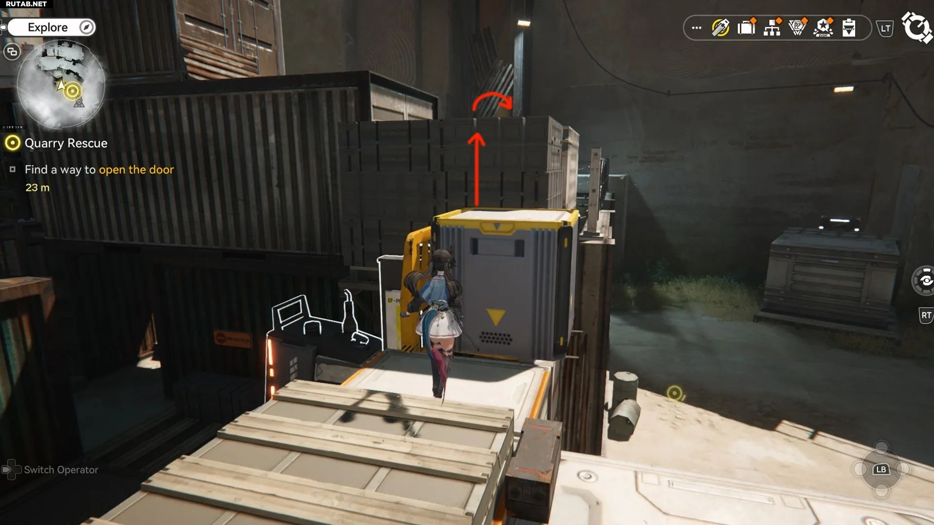Чтобы открыть дверь в квесте «Спасение в карьере», сначала зайдите в контейнер, чтобы добраться до погрузчика.