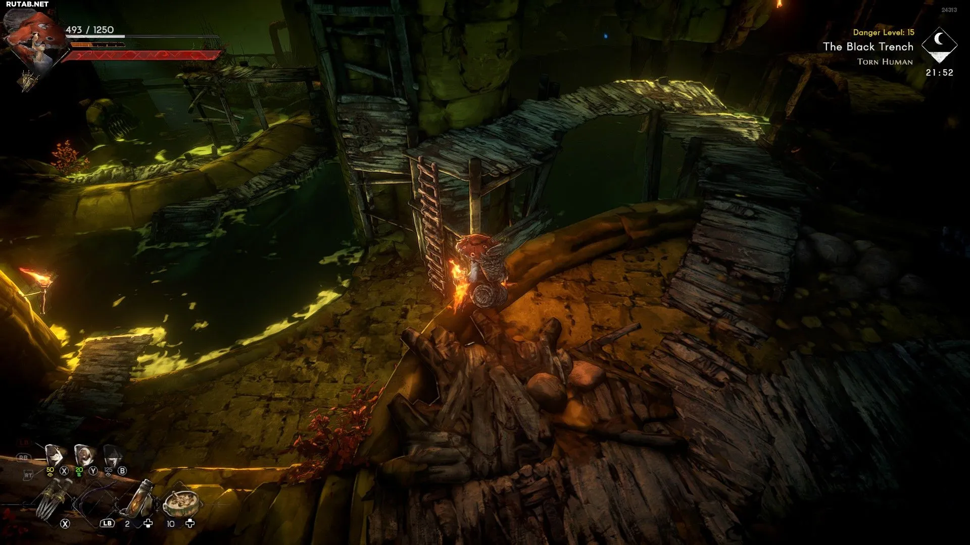 Справа вы увидите рычаг, управляющий ближайшим лифтом. Используйте Ключ от рычага канализации, чтобы активировать его, и быстро бегите к лифту. Далее следуйте по пути вперёд; в круглой области, где путь преграждают крыса и Разорванный человек, с другой стороны находится рычаг. Потяните его, чтобы затопить весь зал.