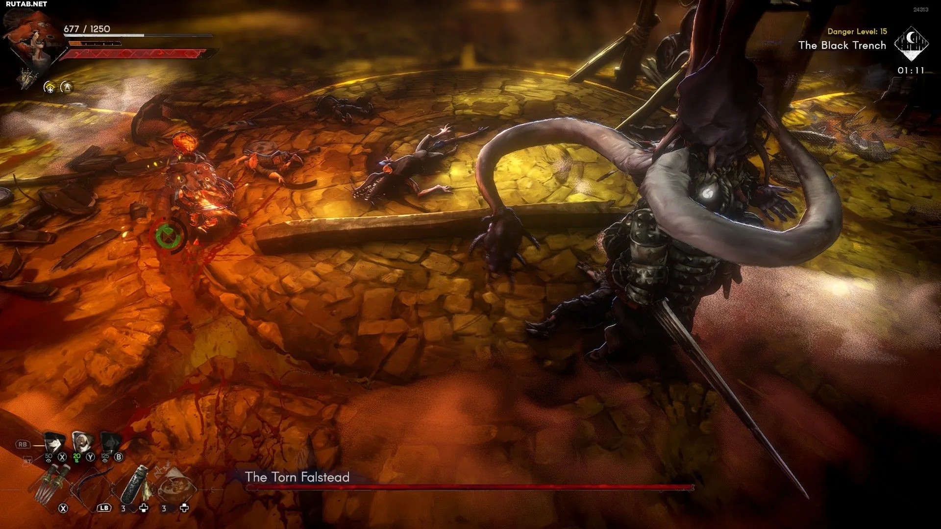 В конце пути вы снова встретите Фалстеда Дарака. Он сражается почти так же, как и на мосту, но после победы в этом месте он превращается в Разорванного Фалстеда — чудовищную версию самого себя.