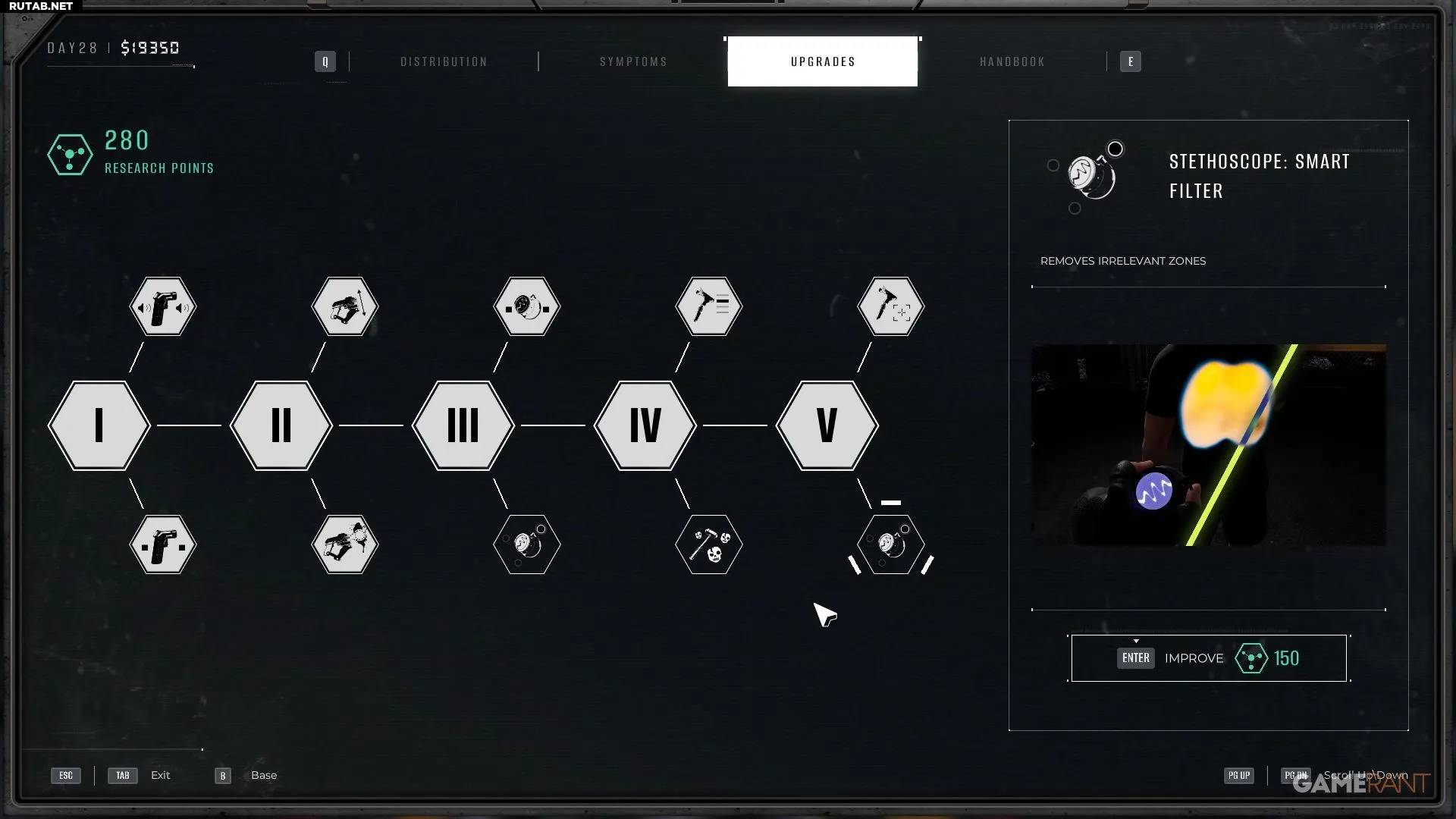 Инструменты в игре можно улучшать, используя очки исследований. Для стетоскопа доступно три улучшения, одно из которых значительно упрощает его использование.