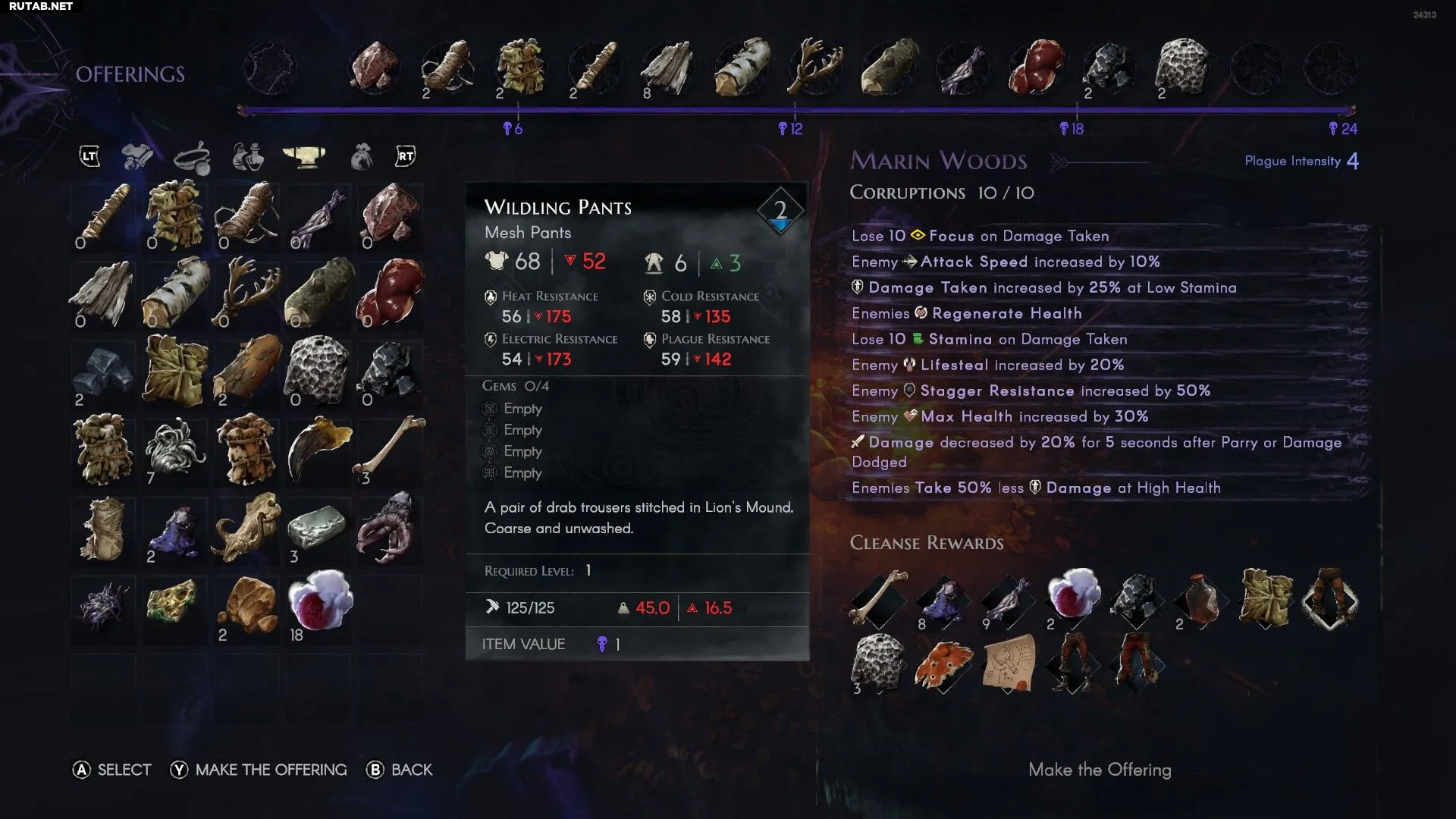 Чтобы повысить сложность зоны чумы, подойдите к любому костру и выберите опцию «Сжечь». Здесь вы можете выбрать любой предмет из инвентаря для сожжения. Пожертвуйте достаточно вещей, и уровень Искажения повысится — чем выше уровень, тем больше наград вы получите после успешного завершения вспышки.