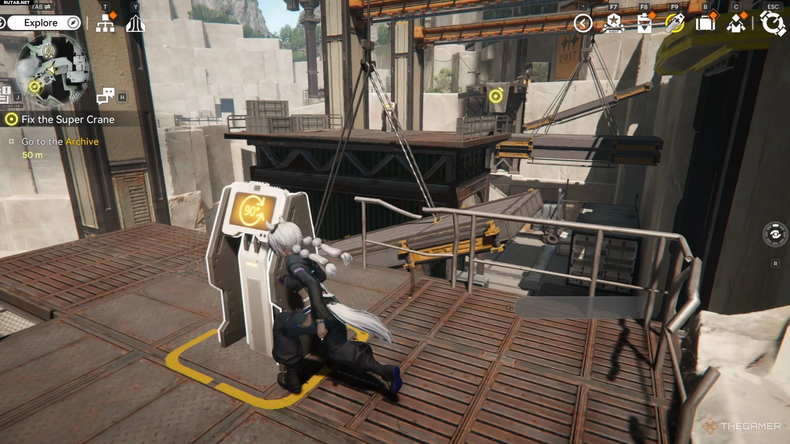 Задание «Починить суперкран» вы получите сразу после завершения квеста «Спасение в карьере», поговорив с рабочим UWST. Затем он приведет вас к механизму, который нужно починить, но для этого потребуется особая деталь. После взаимодействия с механизмом направляйтесь к огромной платформе, отмеченной желтым значком, и нажмите на терминал справа.