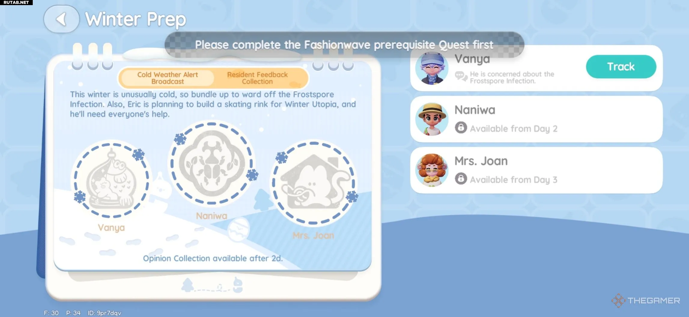 Следующая точка — птичья мастерская Бейли Дж. на втором этаже. Внутри вы найдёте Энни, у которой и находятся пропавшие бумаги. Поговорите и с Бейли Дж., и с Энни, чтобы официально открыть событие «Зимний мороз» и получить доступ к подготовительной фазе.