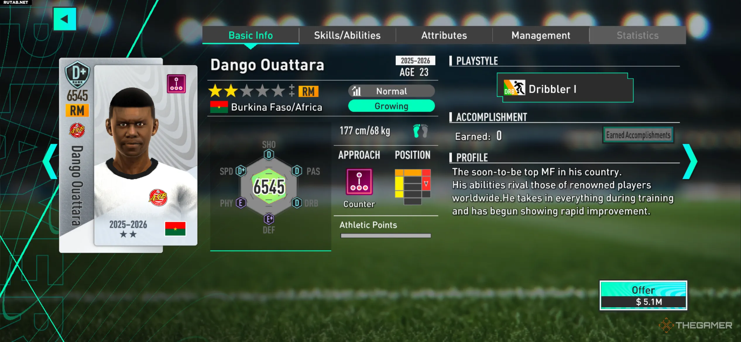На бумаге Данго Уатра может не демонстрировать тех же способностей, что и другие кандидаты, но его быстрый рост вскоре сделает его незаменимым игроком в вашем составе. Благодаря превосходному дриблингу и хорошей скорости он имеет все шансы стать одним из лучших футболистов Буркина-Фасо в мире.
