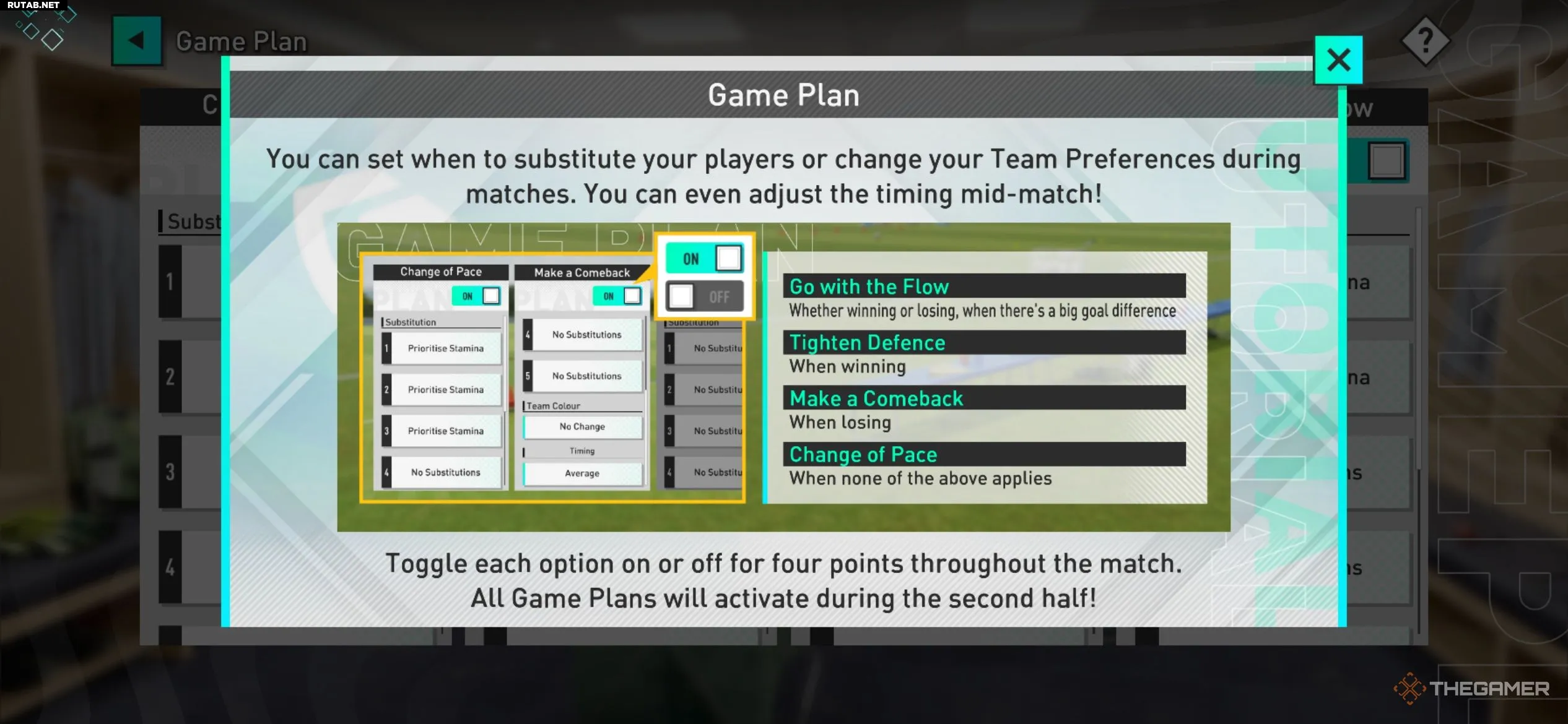 Смена тактики — огромное подспорье, когда вас переигрывают. Используйте перерыв, чтобы изменить указания во время игры, или зайдите в меню «План игры», чтобы установить инструкции до начала матча.
