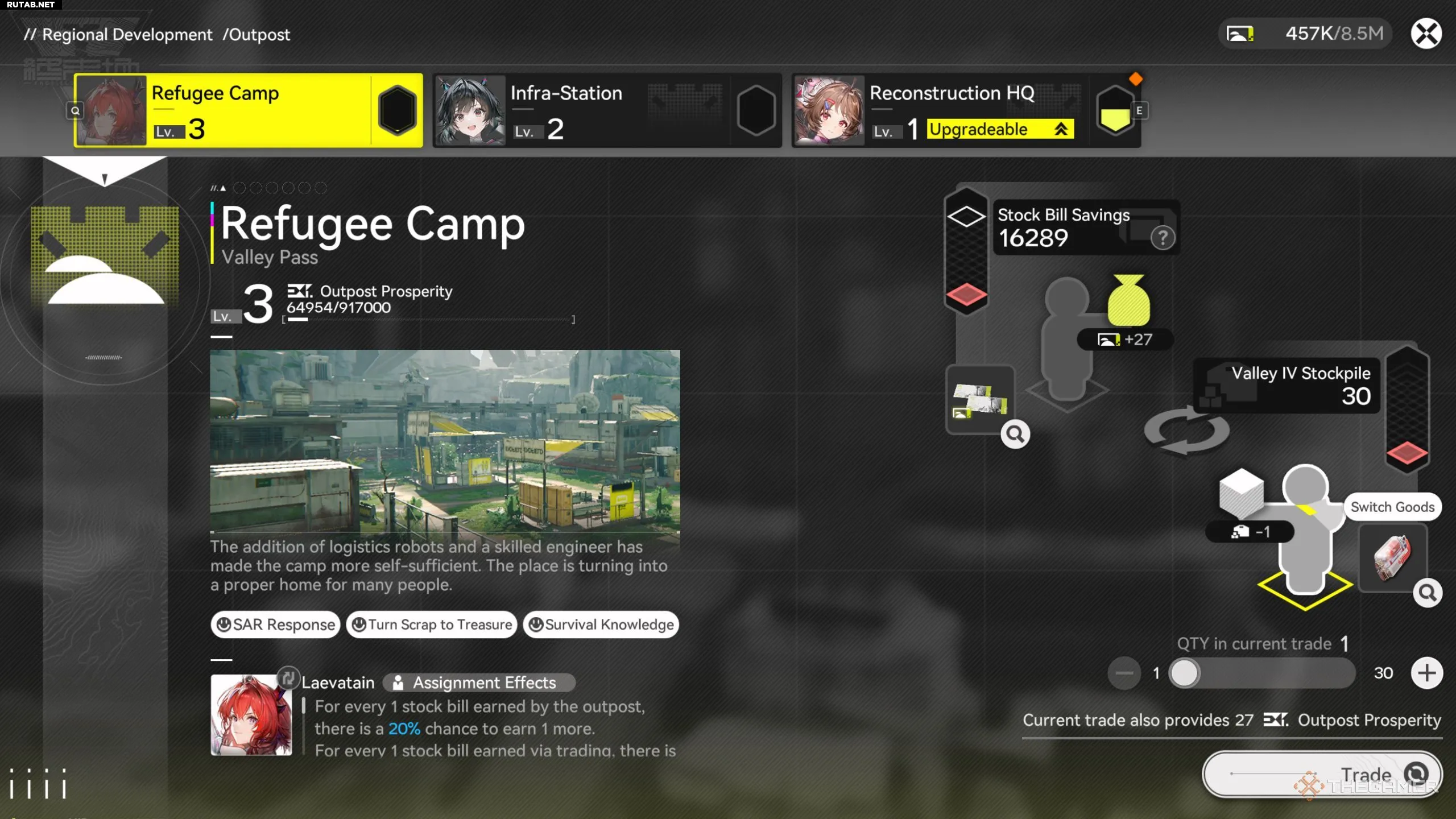 После разблокировки аванпоста он также добавляется в торговую систему. Доступ к ней можно получить в меню управления аванпостами, нажав на значок «Региональное развитие» в левом верхнем углу. Помимо некоторых других предметов, таких как детали снаряжения, лекарства и взрывчатка, ваша основная задача на фабрике будет заключаться в создании ресурсов, необходимых этим аванпостам для торговли.