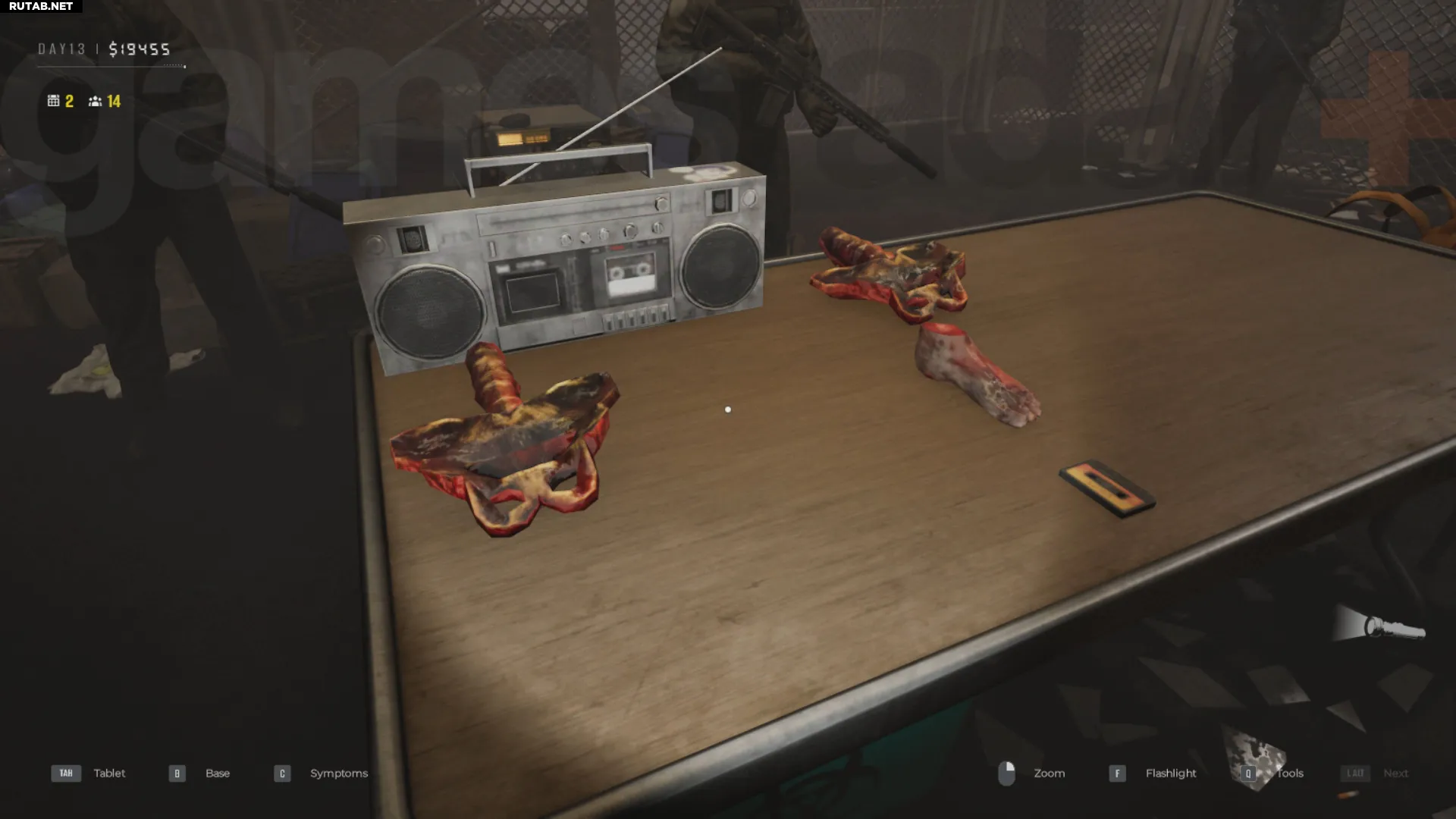 Также обращайте внимание на выживших, которые несут в рюкзаках части тел зомби. Если найдёте такие части, не конфискуйте их (если это не требуется заданием), иначе получите штраф. Просто положите их обратно в рюкзак и отправьте выжившего сразу на ликвидацию, даже если у него нет симптомов заражения, — он уже инфицирован.