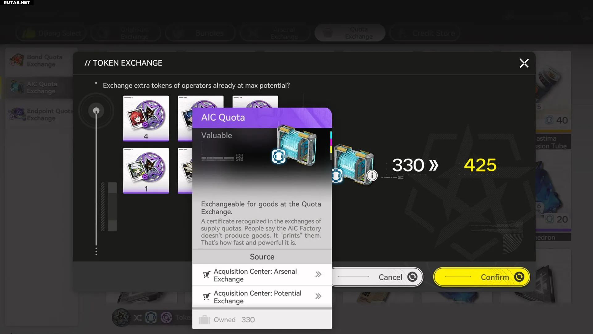 Лишние токены можно обменять на специальную валюту — квоту AIC. Стоимость обмена зависит от редкости персонажа: