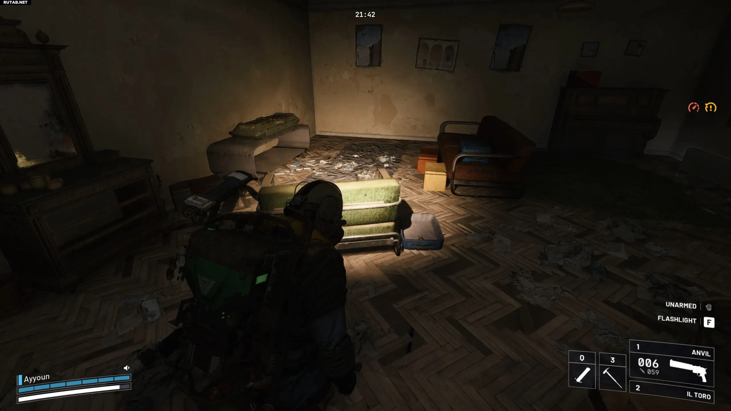 Внутри комнаты с добычей в Деревне Синих Ворот с высокой вероятностью можно найти рюкзак рейдера, оружейный ящик и коробку с боеприпасами. В первую очередь заберите эти предметы, а затем обыщите все шкафы и ящики в помещении.