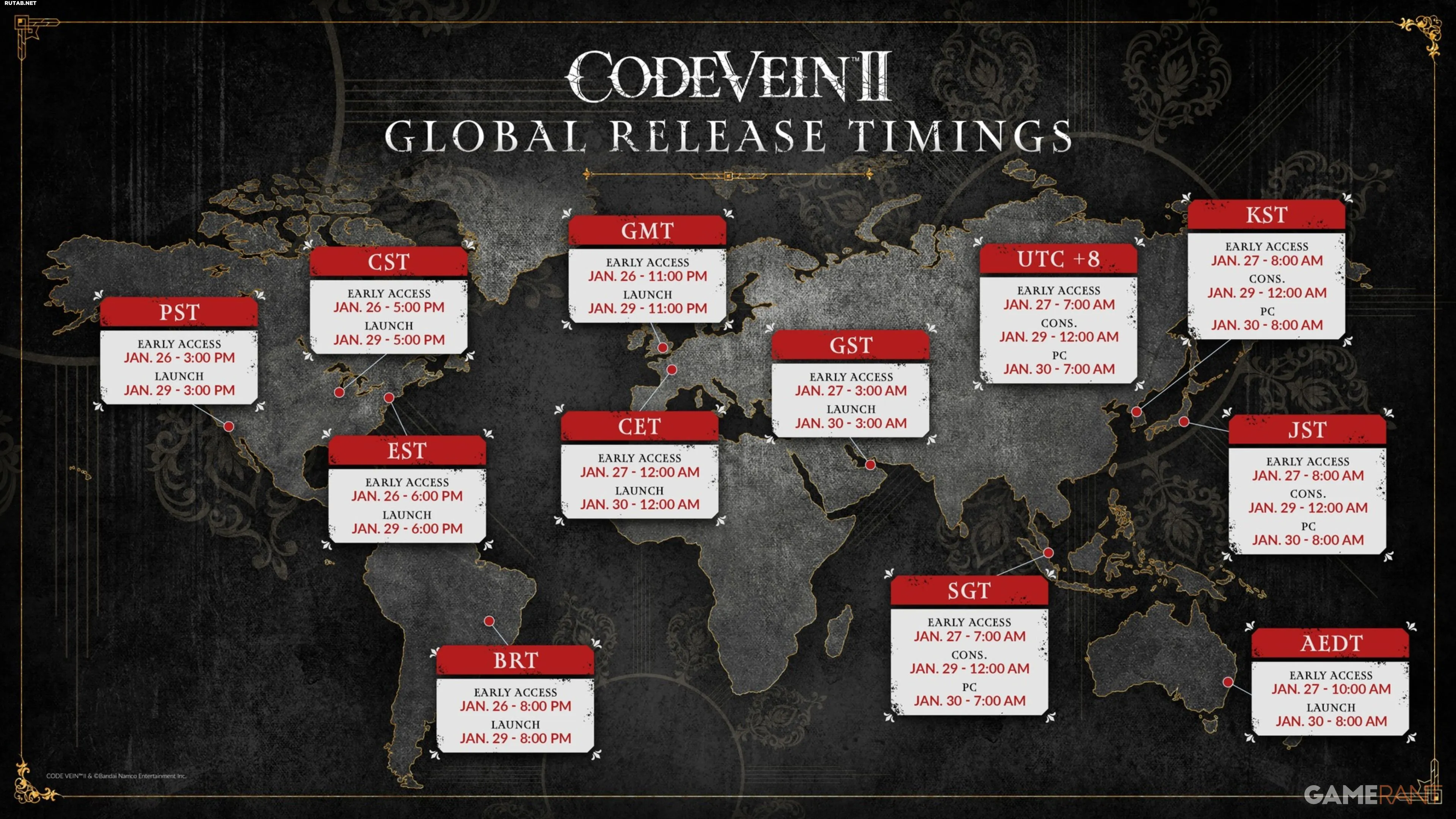 Code Vein II выйдет 29 января в 15:00 по времени Лос-Анджелеса (PST). Предзаказ уже доступен, и игра предлагает трёхдневный ранний доступ. Игроки могут начать своё RPG-приключение раньше, оформив предзаказ на Deluxe или Ultimate издание. Это 72-часовое окно даёт форум, а также включает дополнительные предметы, подробно описанные ниже. Вот глобальное расписание релиза от Bandai Namco: