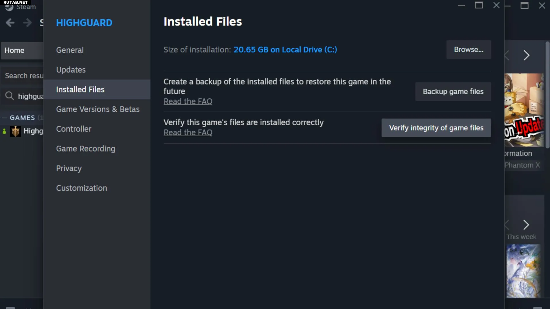 В свойствах перейдите на вкладку «Установленные файлы» и нажмите «Проверить целостность файлов игры». Дождитесь завершения проверки и перезапустите Steam.
