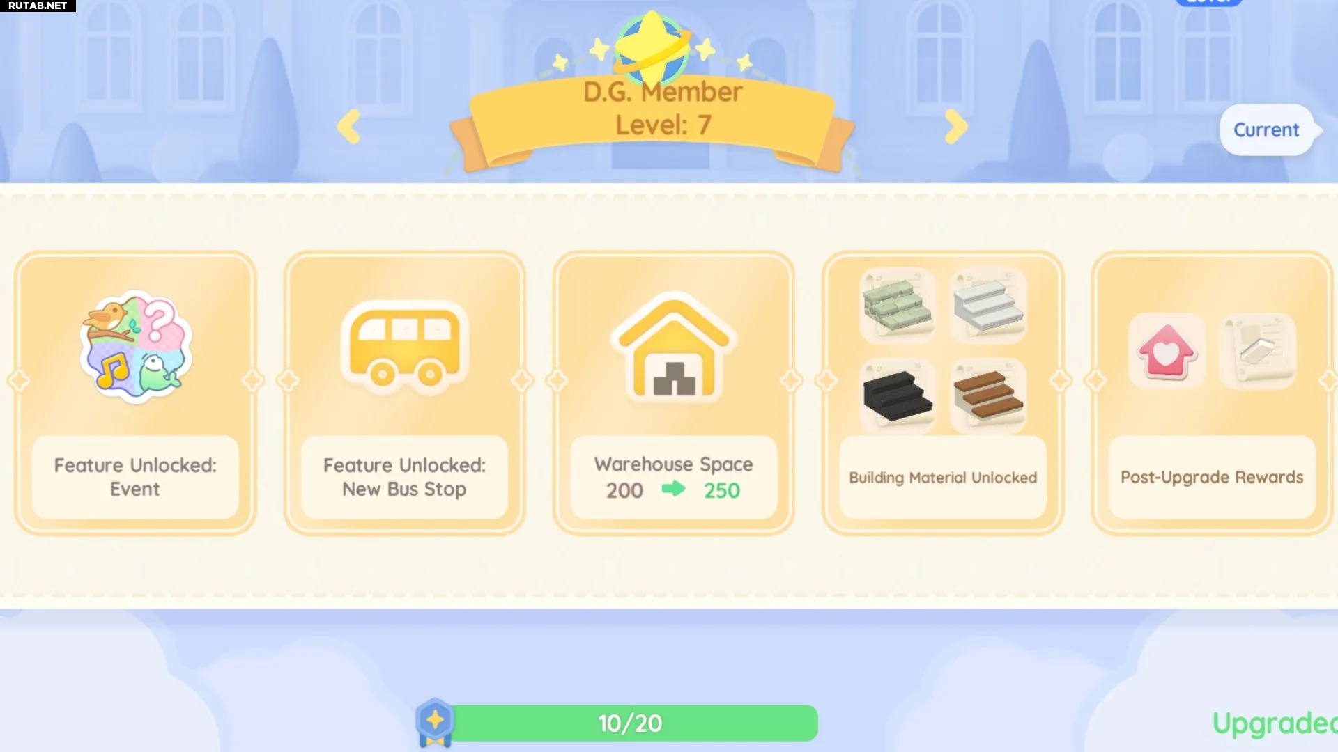 Чтобы проверить, сколько билетов вы получите при следующем повышении уровня DG, откройте приложение «Гильдия разработчиков» на внутриигровом телефоне. Прокрутите список наград для вашего текущего уровня до раздела «Награды после улучшения». Там вы увидите количество билетов и других призов.