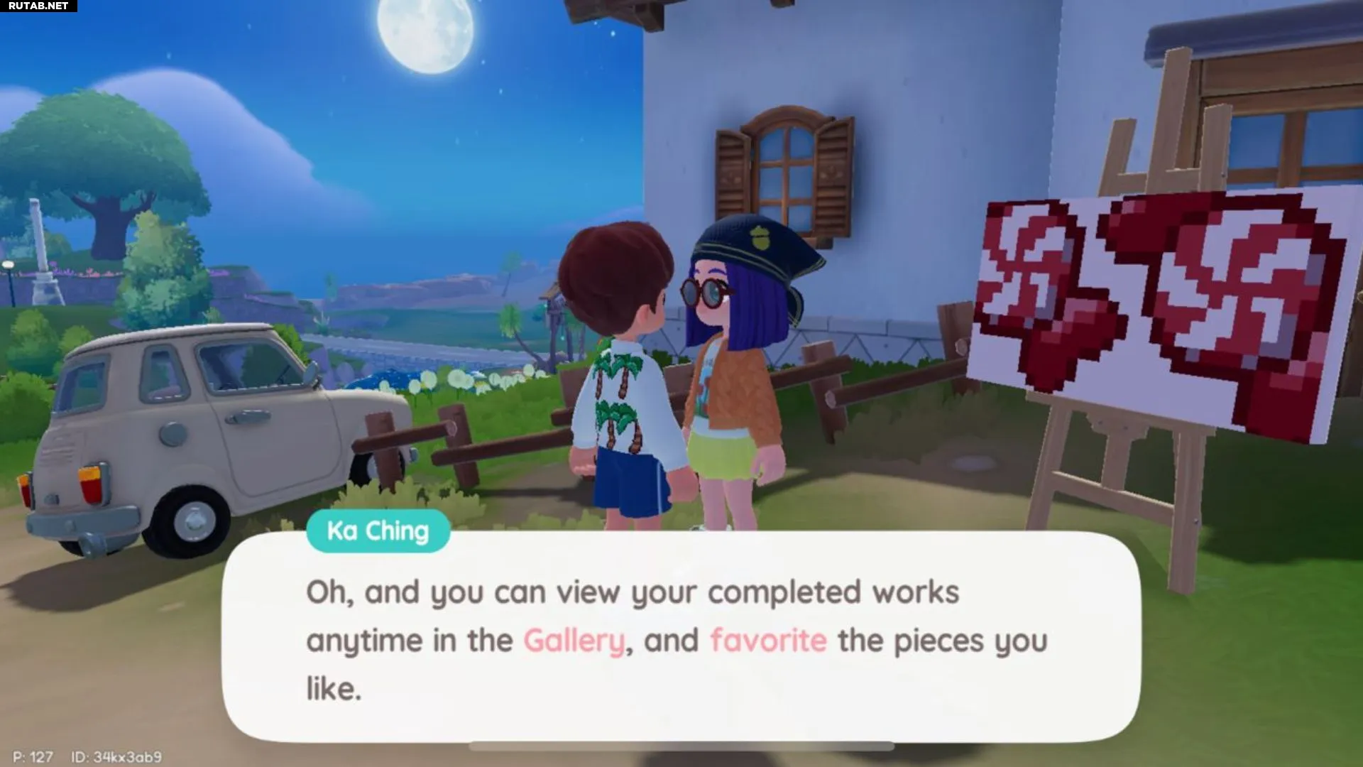 После создания рисунка вернитесь к Ка Чинг. Она попросит вас посетить галерею, не уточняя её местоположение. Галерея находится прямо на вашем мольберте — подойдите к нему и нажмите на значок с изображением картины.