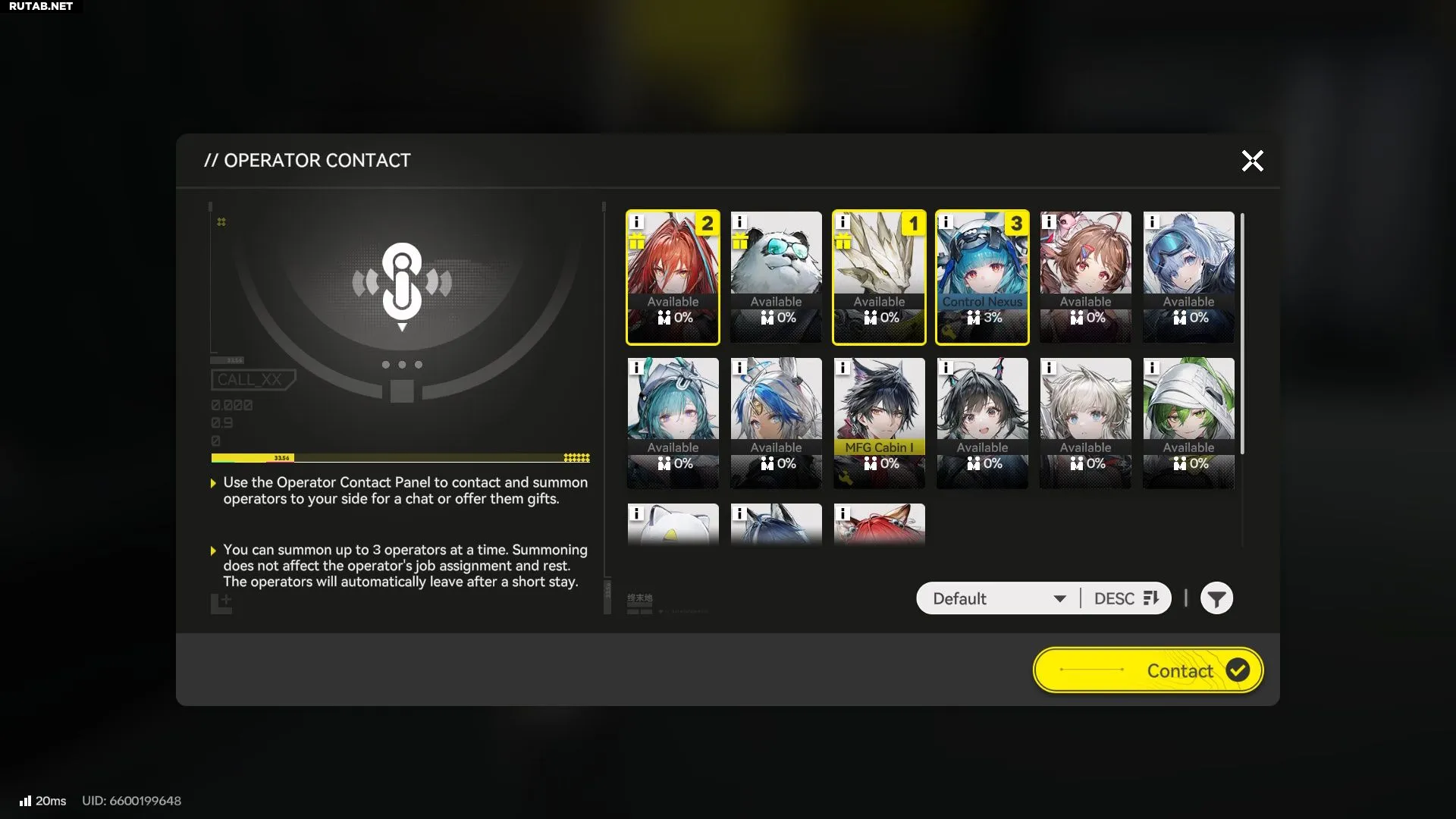 Во время диалога с Оператором на «Дидзяне» доступные подарки будут отсортированы по его предпочтениям. Самые подходящие подарки, дающие наибольшее количество очков Доверия, находятся слева. Узнать вкусы Оператора можно по тегам рядом с его портретом во время разговора. Например, Last Rite предпочитает подарки с тегами «Закалка ума» и «Благотворительность», а Chen Qianyu — «Культура» и «Благотворительность».