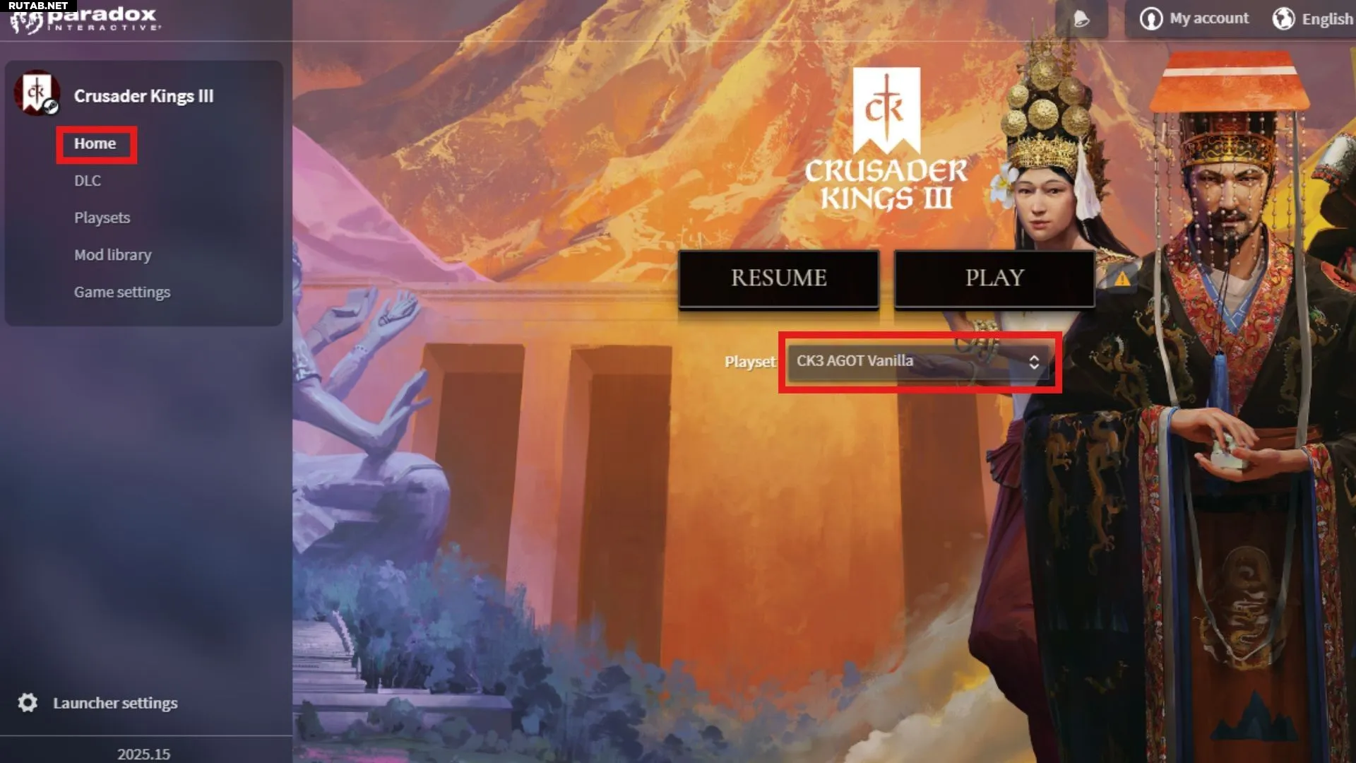 После подписки на мод запустите CK3, чтобы открыть лаунчер. Перед нажатием кнопки игры нажмите на «Наборы модов» слева. Создайте новый набор, добавьте в него мод и выберите «A Game of Thrones».