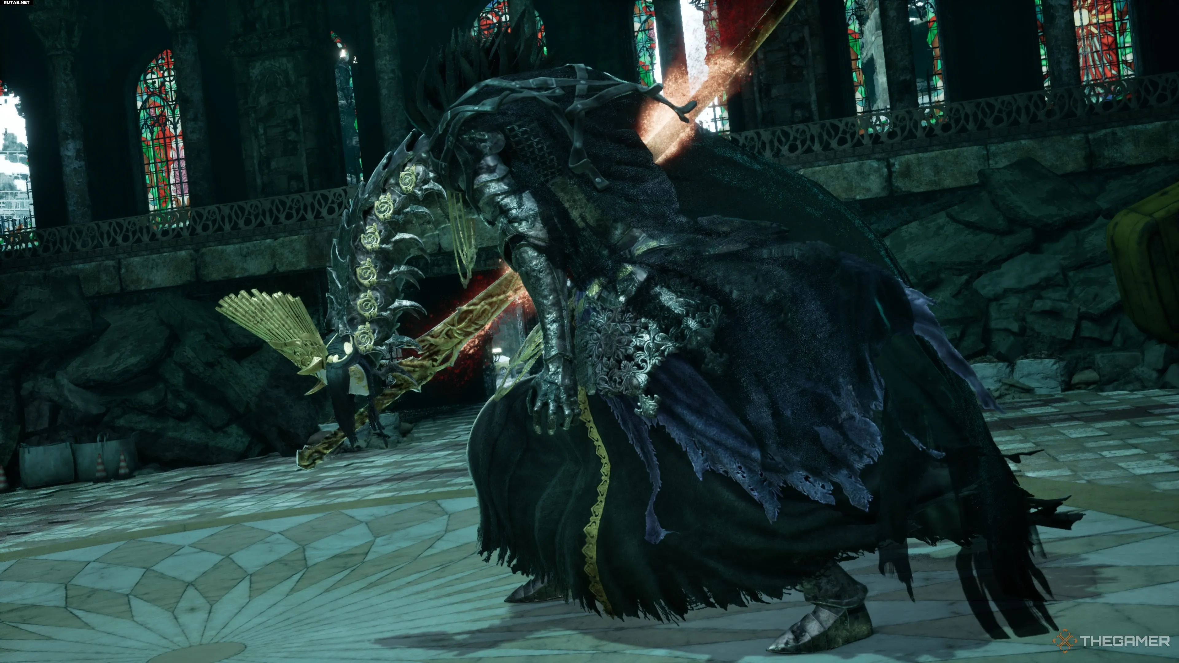 | Широкие взмахи мечом | Основная атака босса — мощные рубящие удары, поражающие большую часть пространства вокруг. Он часто поворачивается во время атак, чтобы достать со всех сторон. Паузы между взмахами довольно долгие, но сами удары происходят внезапно. Тем не менее, если держаться очень близко к боссу и уворачиваться в сторону атаки, их можно легко избежать. |