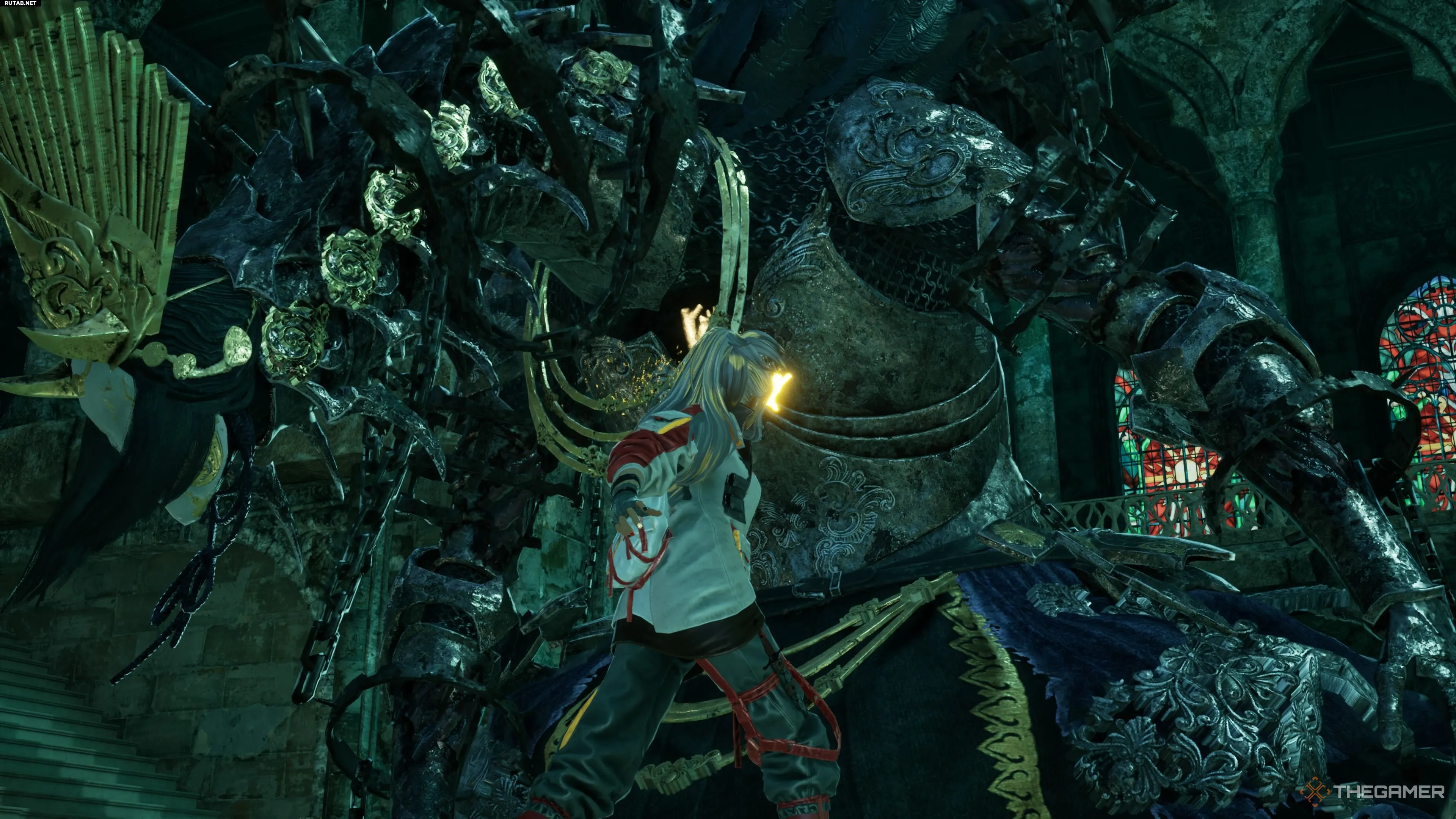 В остальном тактика остаётся прежней. Либо вклинивайте атаки быстрым оружием, ассимилировав партнёра, либо позвольте напарнику отвлекать агрессию, пока вы обрушиваете на Жозе удары тяжёлым оружием.